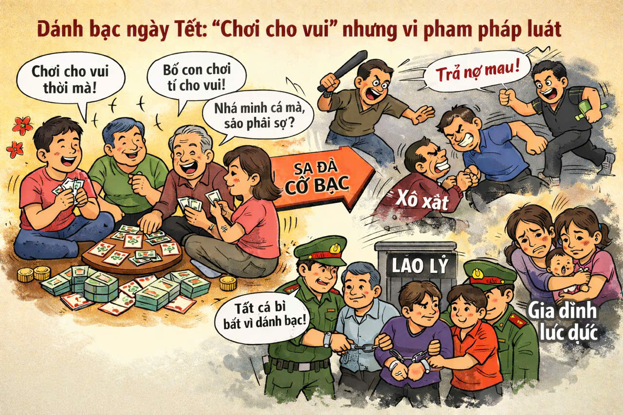 Tết Nguyên đán là thời điểm sum họp gia đình, nhưng đây cũng là lúc tệ nạn cờ bạc thường xuyên diễn biến phức tạp dưới danh nghĩa “vui chơi có thưởng”. Công an tỉnh Phú Thọ khuyến cáo người dân cần nhận thức rõ ranh giới giữa vui chơi lành mạnh và...