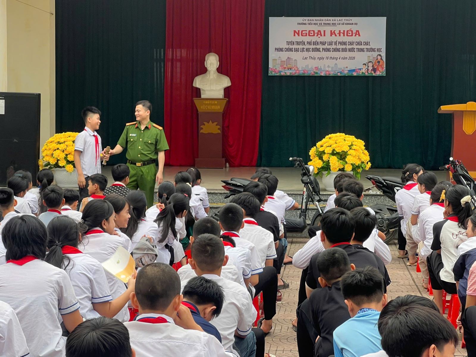 Công an xã Lạc Thủy đẩy mạnh tuyên truyền pháp luật về an toàn giao thông cho học sinh trên địa bàn