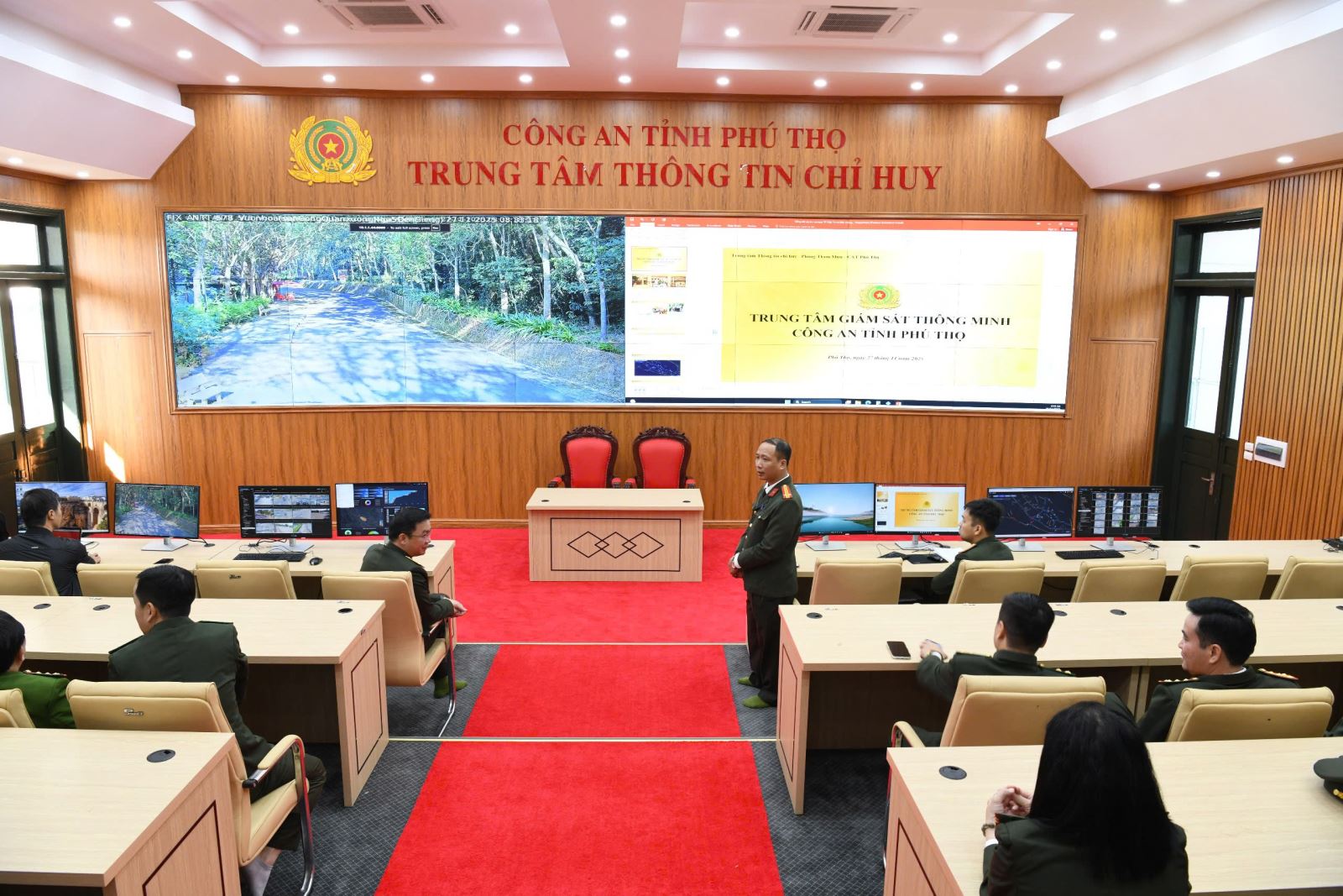 LÃNH ĐẠO CÁC CỤC NGHIỆP VỤ, CÔNG AN CÁC TỈNH TRONG CỤM THI ĐUA SỐ 4 - BỘ CÔNG AN THAM QUAN TRUNG TÂM CAMERA GIÁM SÁT AN NINH TRẬT TỰ, CÔNG AN TỈNH PHÚ THỌ