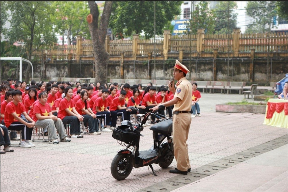 Buổi tuyên truyền diễn ra trong không khí sôi nổi, cởi mở, thu hút sự tham gia tích cực của học sinh. Nhiều câu hỏi, thắc mắc liên quan đến quy định khi sử dụng xe đạp điện, xe máy điện, các tình huống giao thông và cách phòng tránh bạo lực học đường đã được các cán bộ Công an trực tiếp giải đáp cụ thể.