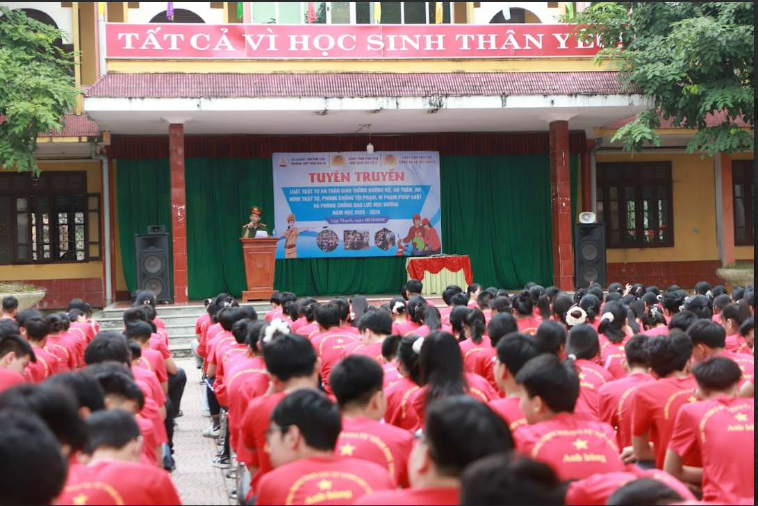 Nhằm tăng cường giáo dục pháp luật, nâng cao nhận thức và ý thức chấp hành pháp luật trong học sinh, ngày 06/10/2025, Công an xã Lập Thạch phối hợp với Đội Cảnh sát giao thông đường bộ số 3, Phòng Cảnh sát giao thông Công an tỉnh Phú Thọ tổ chức buổi tuyên truyền pháp luật cho gần 1.800 học sinh Trường THPT Ngô Gia Tự.