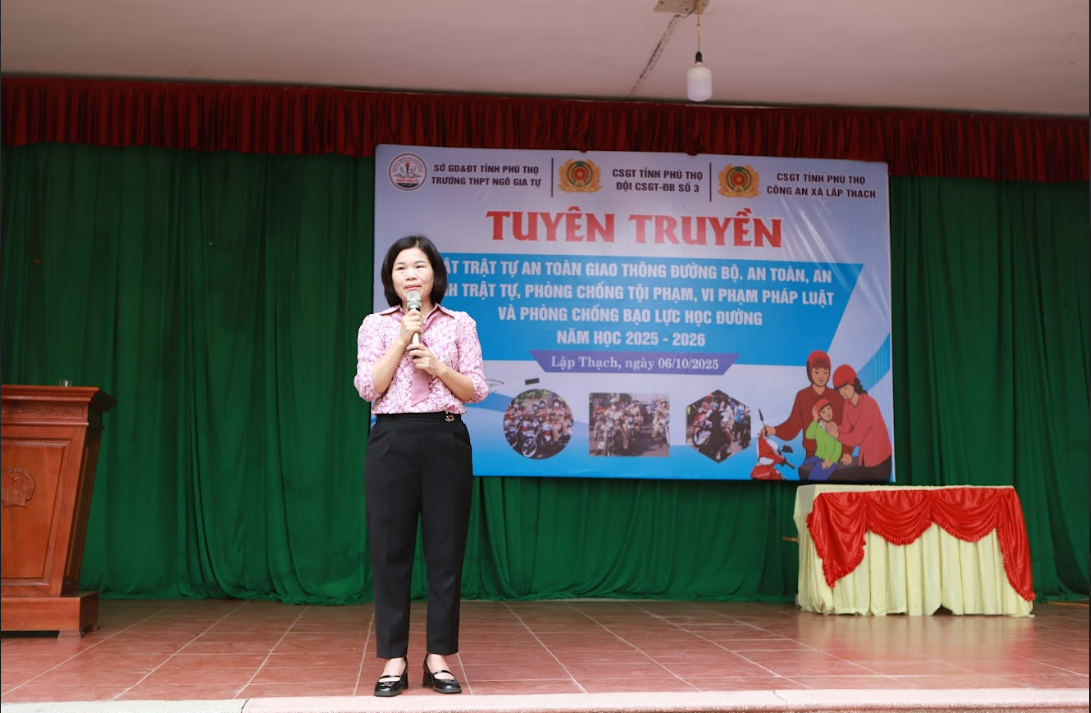 Phát biểu tại chương trình, cô Trần Thị Cẩm Tú - Phó Hiệu trưởng Trường THPT Ngô Gia Tự bày tỏ lời cảm ơn tới lực lượng Công an tỉnh Phú Thọ và nhấn mạnh ý nghĩa của buổi tuyên truyền. Cô cho biết: “Những nội dung mà các cán bộ Công an chia sẻ không chỉ thiết thực mà còn giúp học sinh nhận thức rõ hơn trách nhiệm của bản thân trong việc tuân thủ pháp luật và xây dựng nếp sống văn minh.” Đồng thời, nhà trường yêu cầu giáo viên chủ nhiệm tiếp tục quán triệt nội dung này đến từng lớp học sinh, coi đó là một phần quan trọng trong giáo dục đạo đức, lối sống cho thế hệ trẻ.