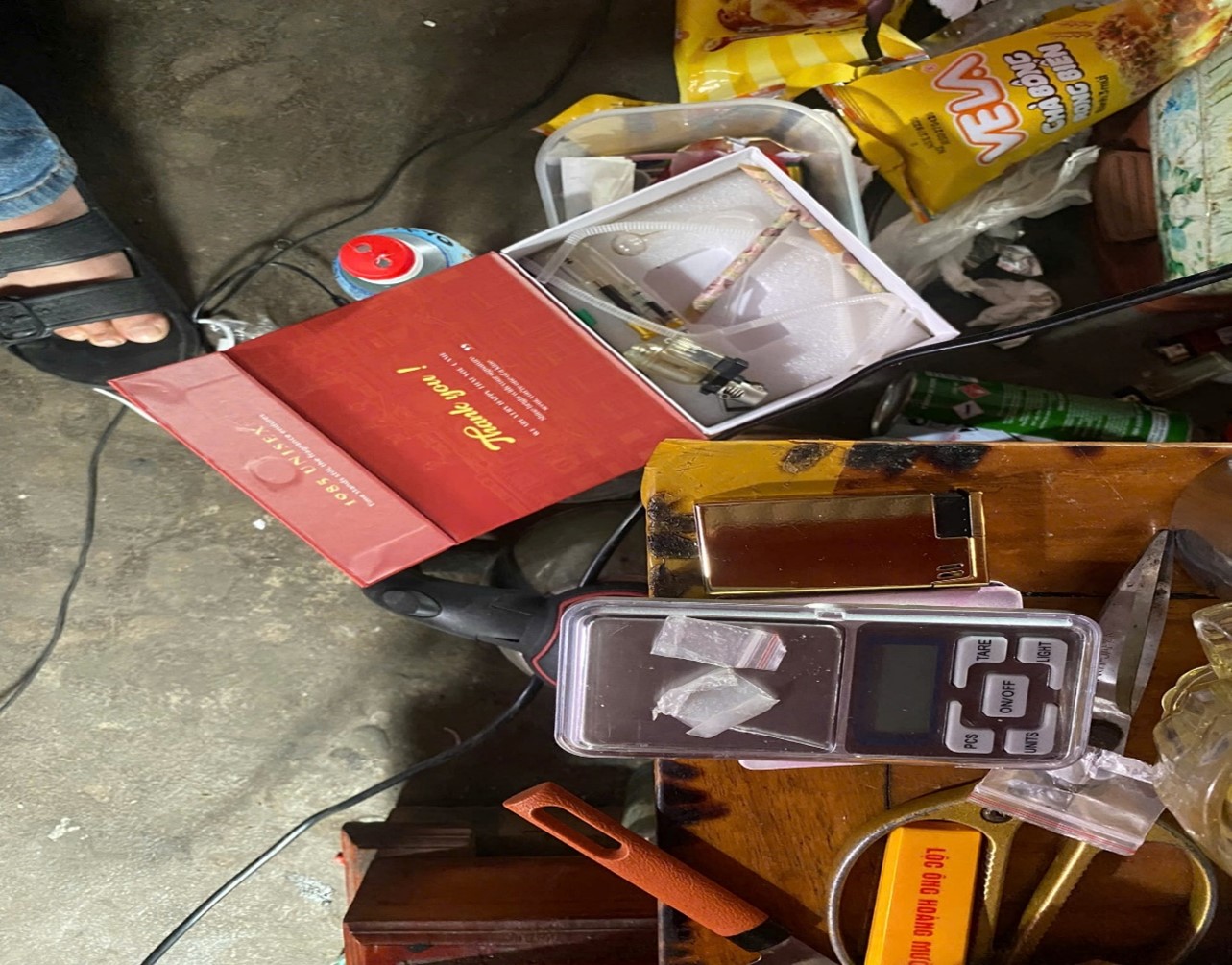 Theo lời khai, vào tối ngày 10/3/2026, T. và Tr. đã cùng nhau sử dụng ma túy đá tại phòng ngủ của T. Tổ công tác đã tiến hành kiểm tra nơi ở của đối tượng và phát hiện, thu giữ nhiều vật chứng liên quan, gồm: Một bộ dụng cụ sử dụng ma túy tự chế; một cóng thủy tinh có bám dính chất rắn dạng tinh thể màu trắng; một đoạn ống hút nhựa có chứa chất tinh thể màu trắng; một tờ tiền mệnh giá 2.000 đồng có bám dính chất nghi ma túy; cùng một bật lửa ga và một cân điện tử.