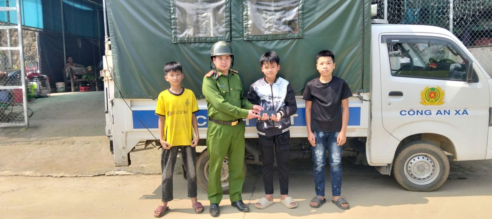Trước đó, trong lúc đi lại trên địa bàn xã, các em phát hiện một chiếc điện thoại di động do người dân làm rơi. Nhận thức đây là tài sản của người khác, các em đã chủ động mang đến trụ sở Công an xã để trình báo và giao nộp, đề nghị cơ quan chức năng tìm chủ sở hữu để trao trả.