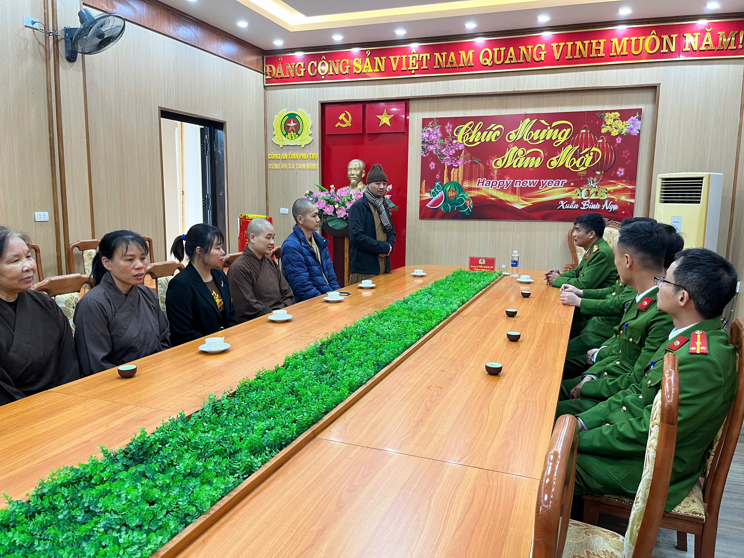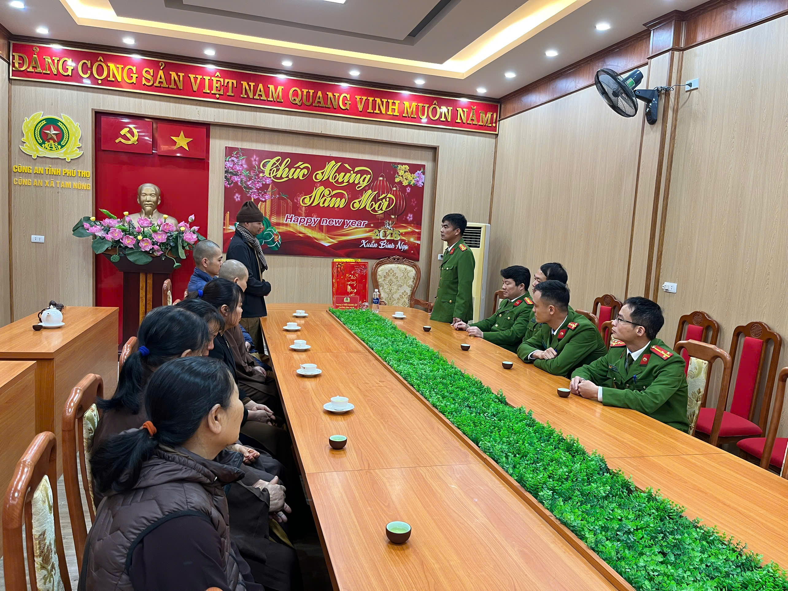 Nhân dịp Tết Nguyên đán Bính Ngọ năm 2026, sáng ngày 04/02/2026, Ban đại diện Phật giáo xã Tam Nông đã đến thăm, chúc Tết cán bộ, chiến sĩ Công an xã Tam Nông, góp phần tăng cường mối quan hệ gắn bó giữa lực lượng Công an với các tổ chức tôn giáo trên địa bàn.