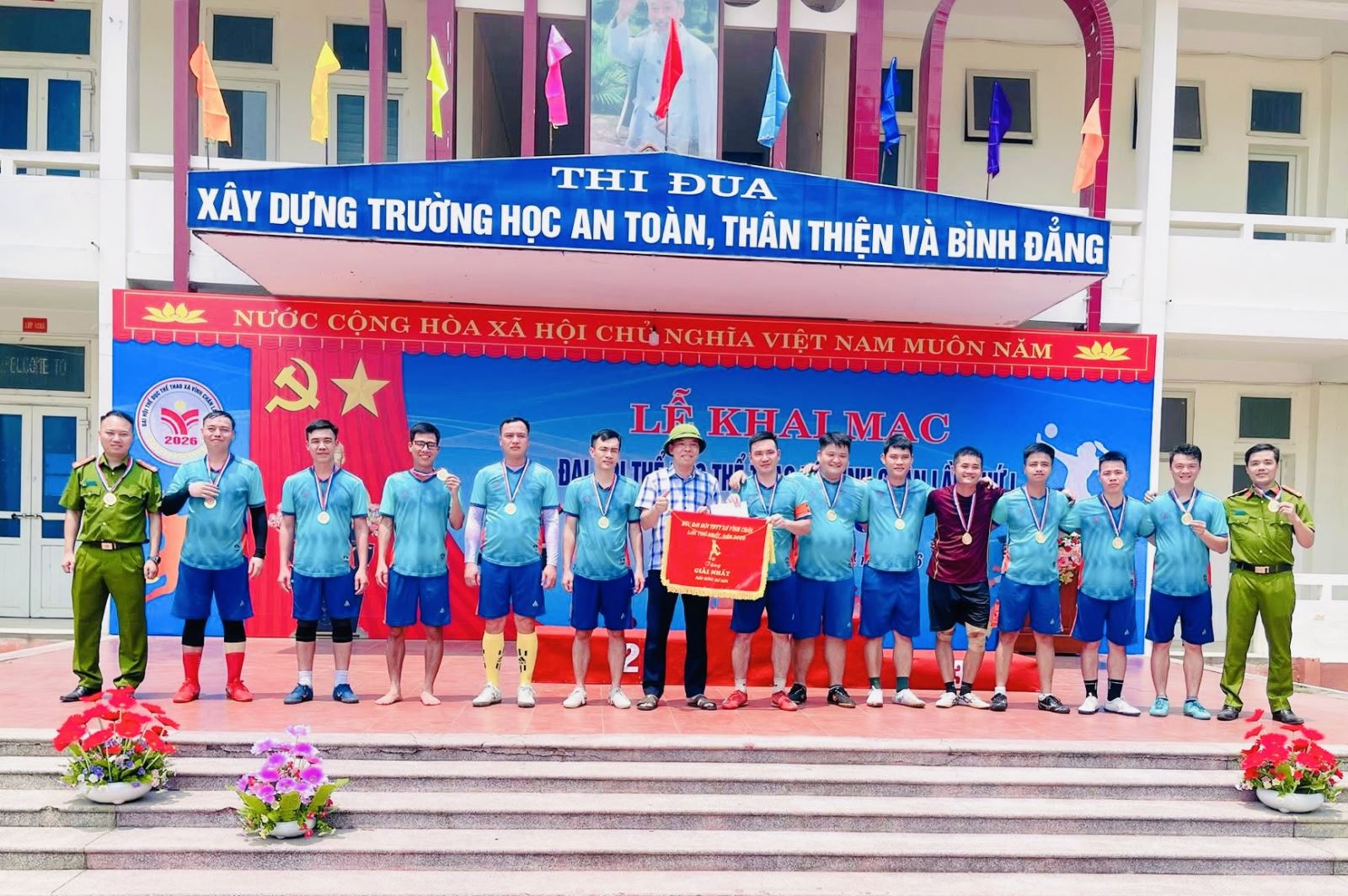 Đoàn vận động viên của Công an xã Vinh Chân đạt Giải nhất nội dung bóng đá nam