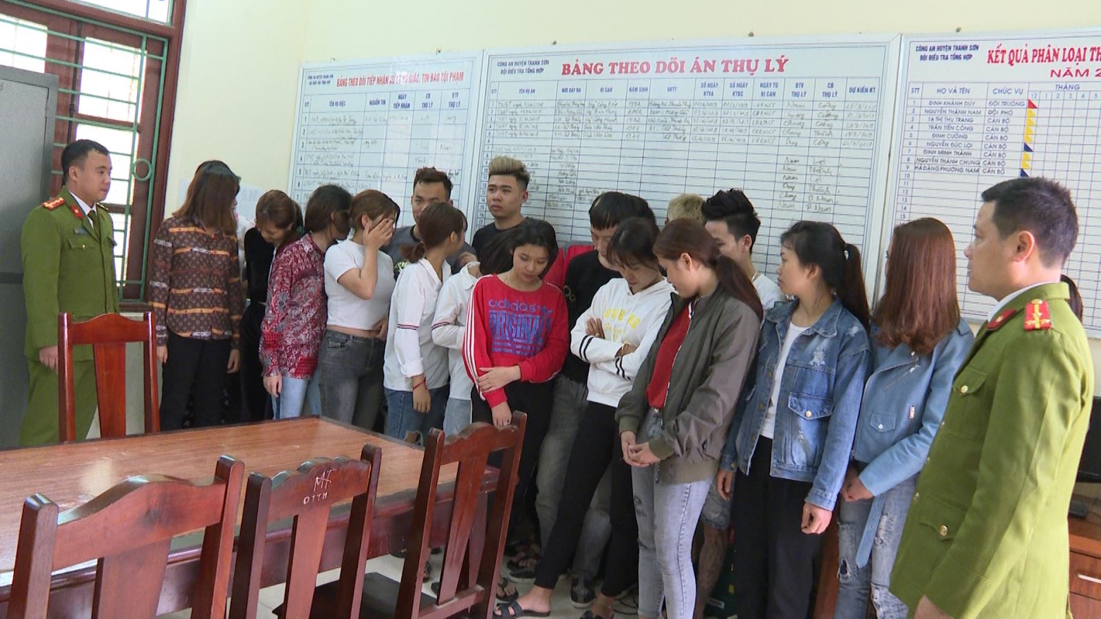 Công an huyện Thanh Sơn, tỉnh Phú Thọ vừa phát hiện 20 đối tượng, gồm 14 nữ và 6 nam đang có hành vi tàng trữ trái phép chất ma túy và tàng trữ các loại hung khí nguy hiểm, trong đó 4 đối tượng dương tính với ma túy.