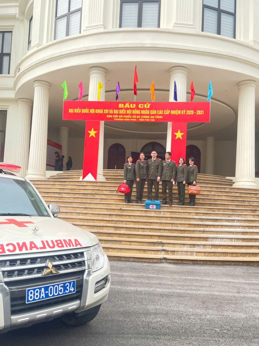 Trong đợt bầu cử đại biểu Quốc hội khóa XVI và đại biểu Hội đồng nhân dân các cấp nhiệm kỳ 2026-2031, Bệnh xá số 1 đã chủ động xây dựng phương án bảo đảm y tế. Đơn vị đã bố trí 1 tổ y tế cơ động gồm 4 cán bộ cùng đầy đủ cơ số thuốc, trang thiết bị, phương tiện y tế thực hiện nhiệm vụ tại điểm bầu cử số 62 Công an tỉnh; đồng thời phân công cán bộ tham gia phục vụ tổ bầu cử, hoàn thành tốt nhiệm vụ được giao, góp phần bảo đảm an toàn tuyệt đối cho sự kiện chính trị quan trọng.