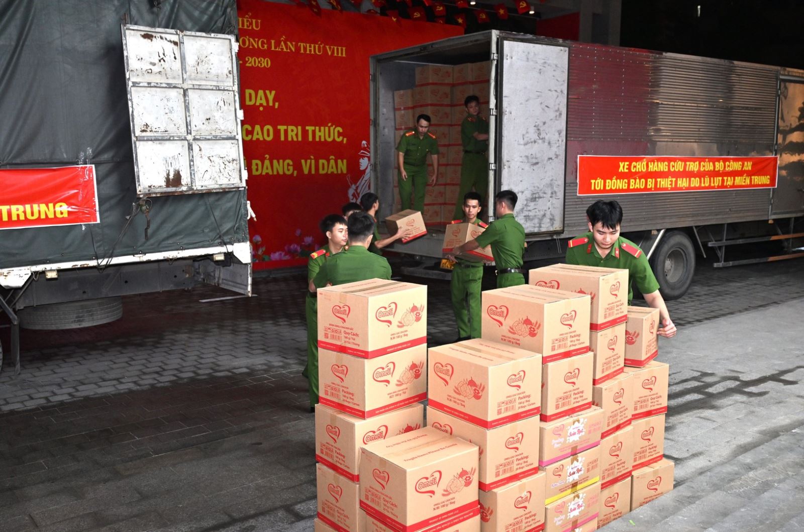 Theo Thiếu tướng Nguyễn Hồng Nguyên, trong đợt này, Bộ Công an chuyển vào miền Trung 60.000 chai nước tinh khiết, 07 tấn bánh và lương khô, giao Công an TP Huế và Công an TP Đà Nẵng tiếp nhận, phân phối kịp thời đến người dân tại các khu vực đang bị ngập lụt. Và trong sáng ngày mai, 31/10, toàn bộ lương thực, thực phẩm sẽ đến tận tay bà con với tinh thần là người dân nào cũng nhận được hàng cứu trợ và đồng bào nào cũng đủ cơm ăn, đủ thực phẩm, đủ nước uống và sẽ được chăm lo, chăm sóc chu đáo theo đúng tinh thần lời kêu gọi của đồng chí Tổng Bí thư Tô Lâm là "không để một người dân nào bị đói, không để một người dân nào bị rét, không để một người dân nào phải màn trời chiếu đất".