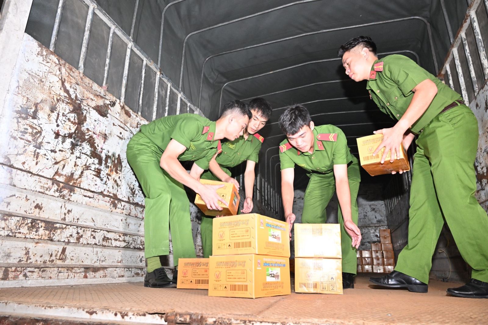 Ngay trong đêm, cán bộ, chiến sĩ các đơn vị thuộc Bộ Công an đã tổ chức bốc xếp, kiểm đếm và niêm phong hàng hóa, bảo đảm an toàn tuyệt đối về người, phương tiện và vật tư.