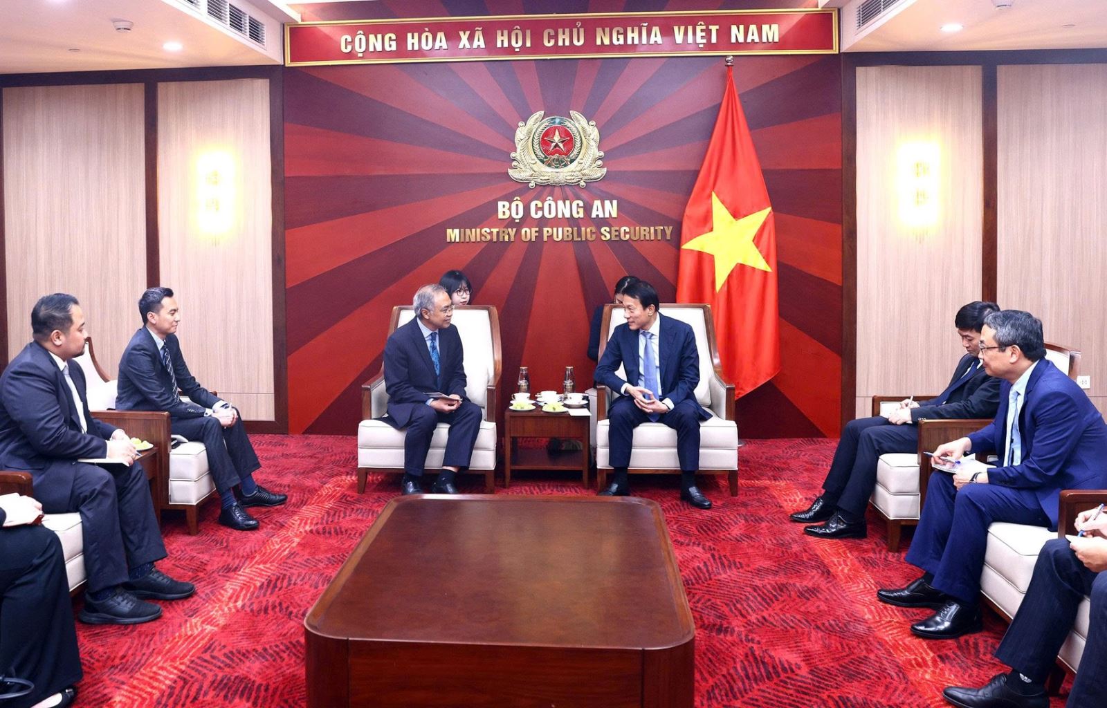 Chiều 12/3/2026, tại Hà Nội, Đại tướng Lương Tam Quang, Ủy viên Bộ Chính trị, Bộ trưởng Bộ Công an đã tiếp xã giao ngài Adam Mulawarman Tugio nhân dịp được bổ nhiệm làm Đại sứ đặc mệnh toàn quyền Cộng hòa Indonesia tại Việt Nam.
