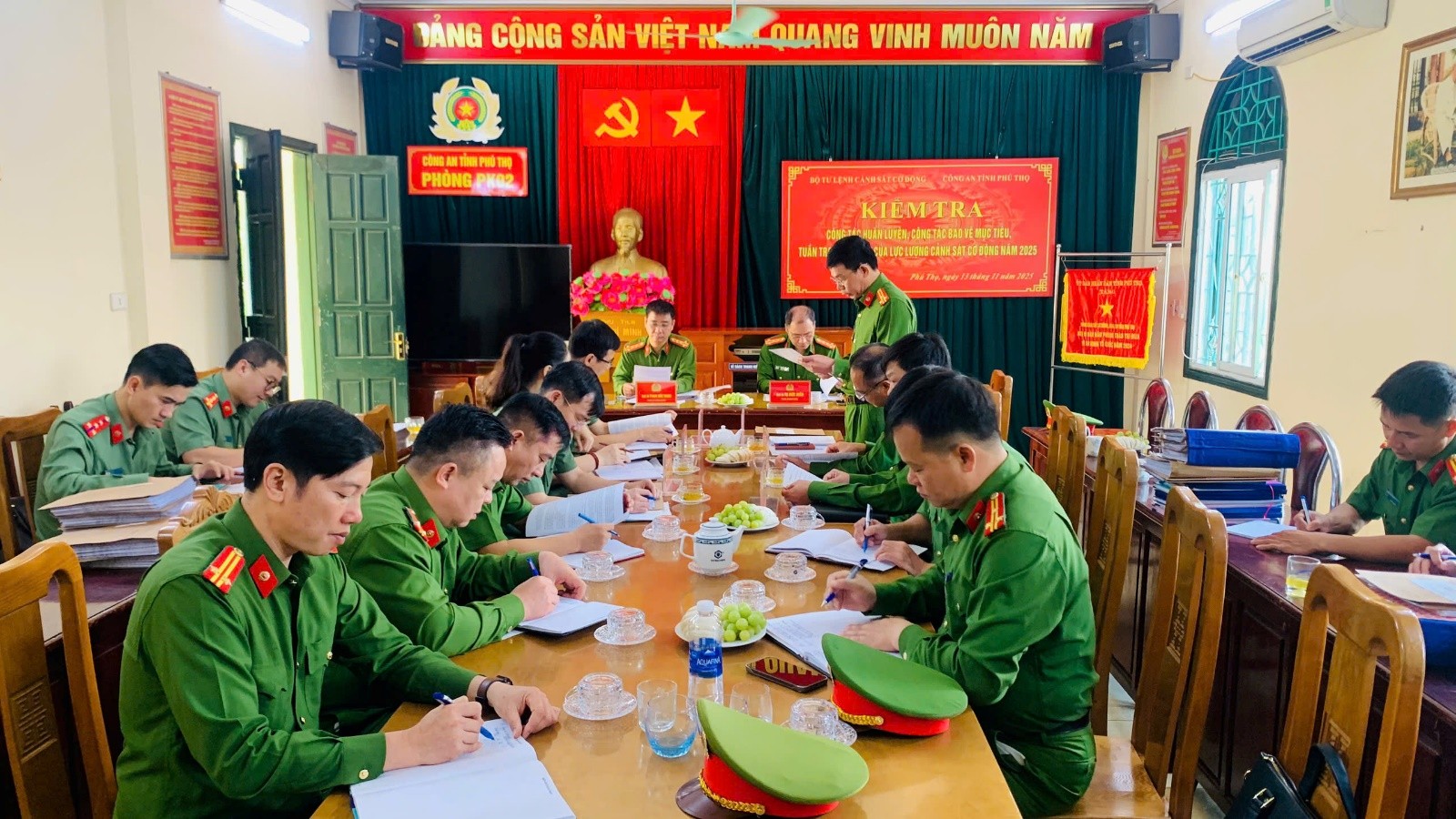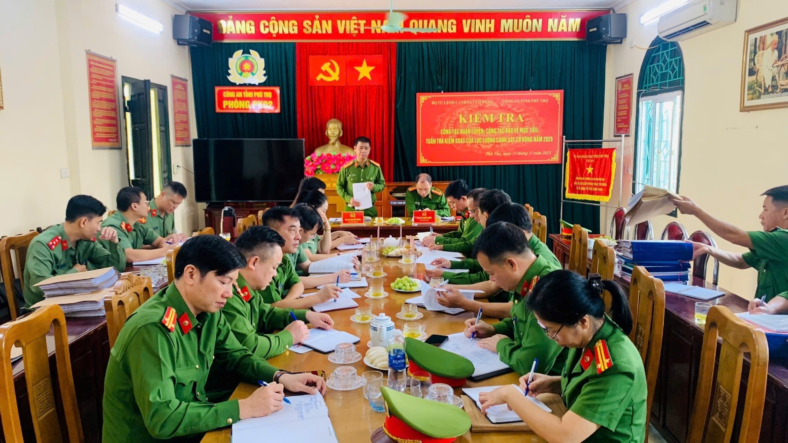 Thực hiện chương trình công tác năm 2025, ngày 13/11/2025, Đoàn công tác của Bộ Tư lệnh Cảnh sát cơ động (CSCĐ), Bộ Công an đã có buổi làm việc, kiểm tra toàn diện các mặt công tác của lực lượng CSCĐ, Công an tỉnh Phú Thọ. Hoạt động nhằm đánh giá thực chất kết quả thực hiện nhiệm vụ và làm cơ sở đề xuất các giải pháp nâng cao chất lượng công tác trong thời gian tới.