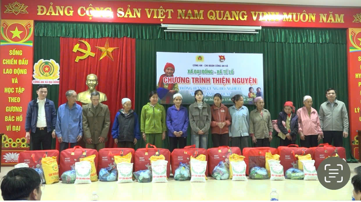 Ngày 13/12/2025, được sự nhất trí của Đảng ủy, chính quyền địa phương, Công an xã Đại Đồng phối hợp với Công an xã Tề Lỗ tổ chức chương trình thiện nguyện với chủ đề “Đồng hành cùng hộ nghèo”, “Đông ấm cho em”, trao tặng quà cho các hộ gia đình có hoàn cảnh khó khăn trên địa bàn xã Đại Đồng, tỉnh Phú Thọ.