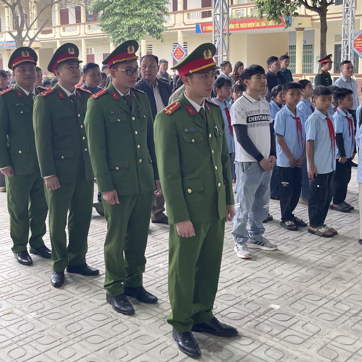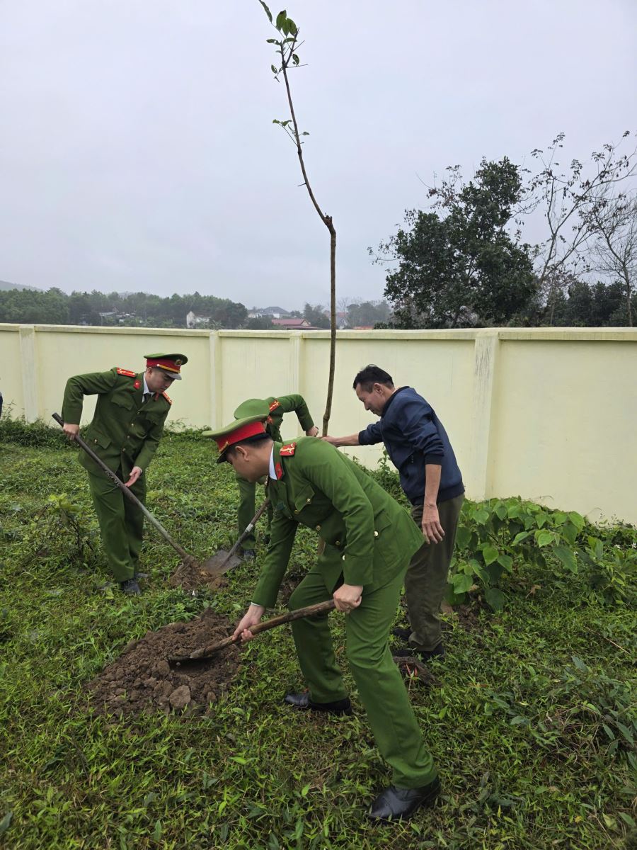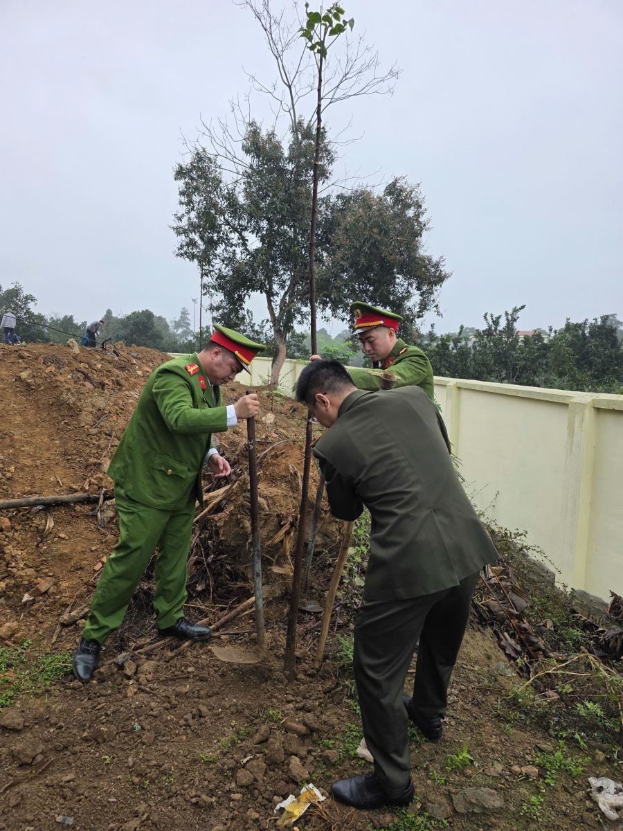 Ngay sau lễ phát động, lực lượng Công an xã đã phối hợp cùng các ban, ngành, đoàn thể xã và cán bộ, giáo viên nhà trường tiến hành trồng hơn 230 cây các loại.