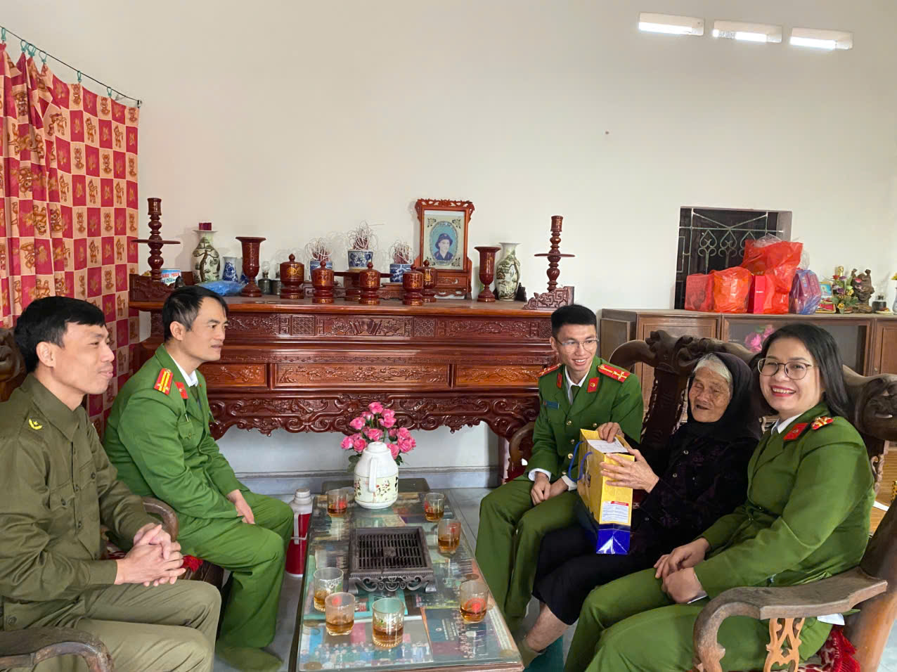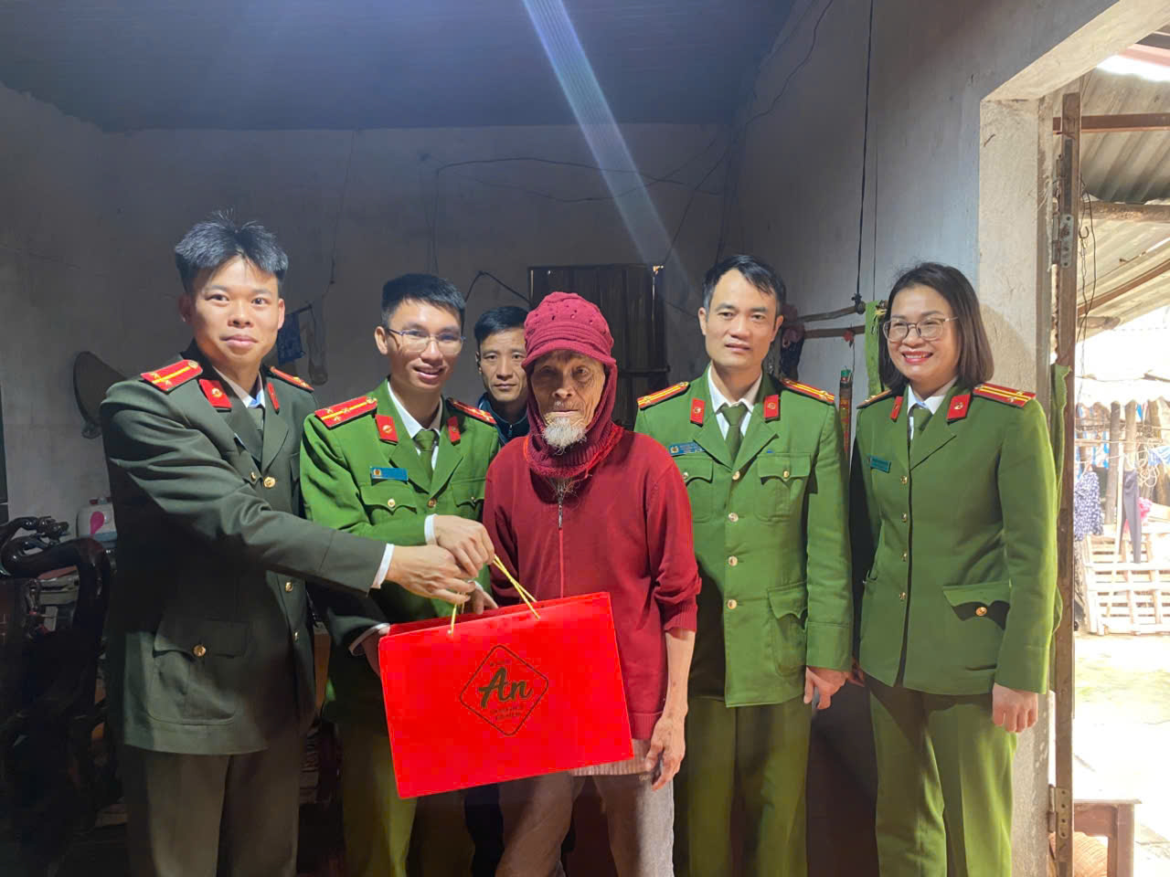 Chỉ huy và đoàn viên, hội viên Công an xã thăm hỏi, động viên các hộ gia đình đặc biệt khó khăn, người cao tuổi, người neo đơn