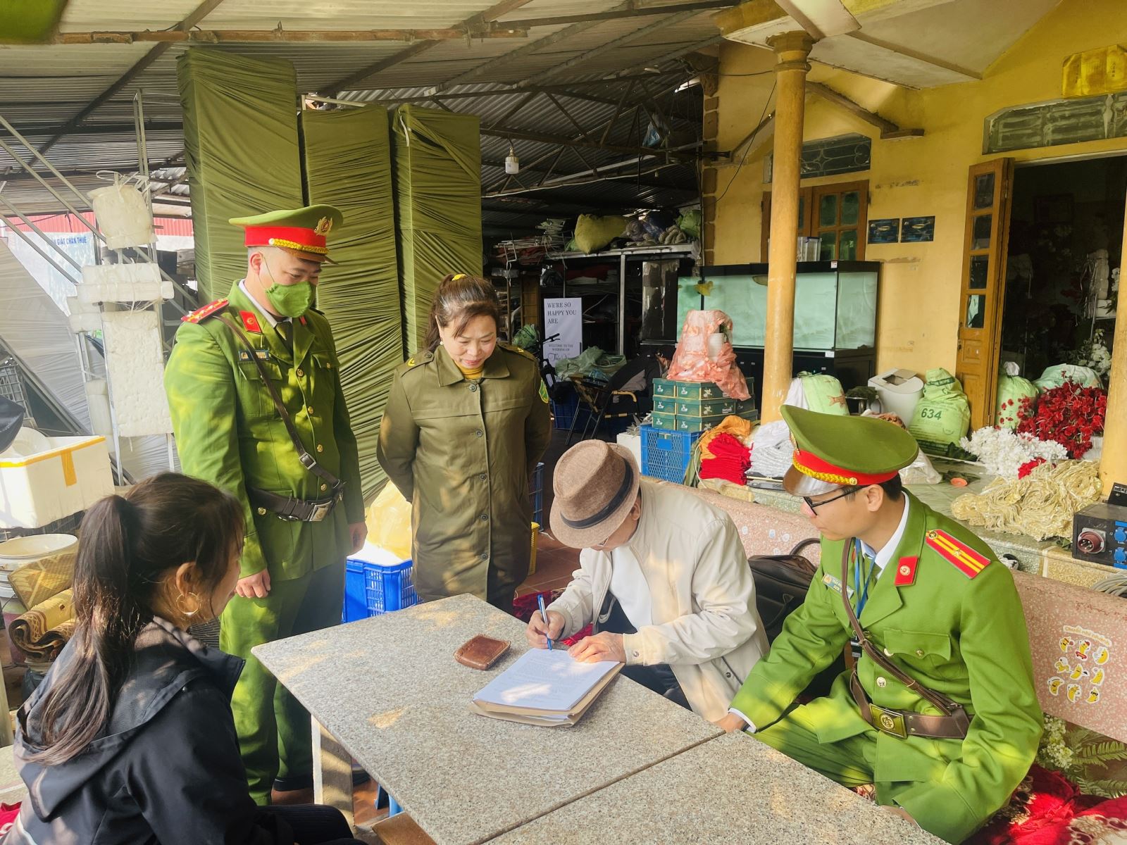 Công an tuyên truyền người dân ký cam kết