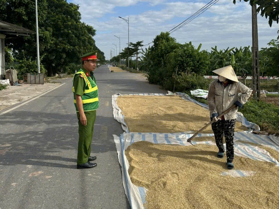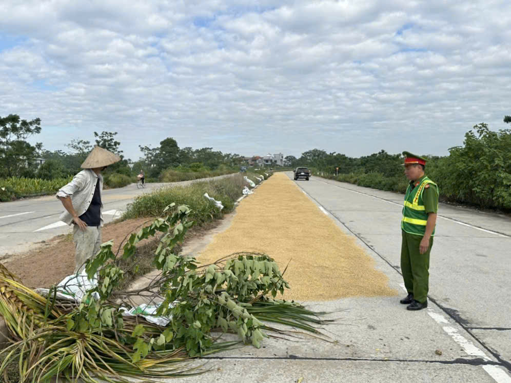 Hiện nay, các hộ dân trên địa bàn toàn xã đang bắt đầu vào mùa thu hoạch lúa vụ Hè Thu năm 2025. Vì vậy, một số hộ dân phơi rơm, đốt rơm, phơi thóc, lúa trên các tuyến đường giao thông, gây nguy hiểm cho người tham gia giao thông; cùng với việc phơi nông sản, người dân còn dùng gạch, đá và các loại vật dụng khác ngăn đường không cho bánh xe đi vào. Điều này tăng nguy cơ tiềm ẩn mất an toàn giao thông đường bộ.