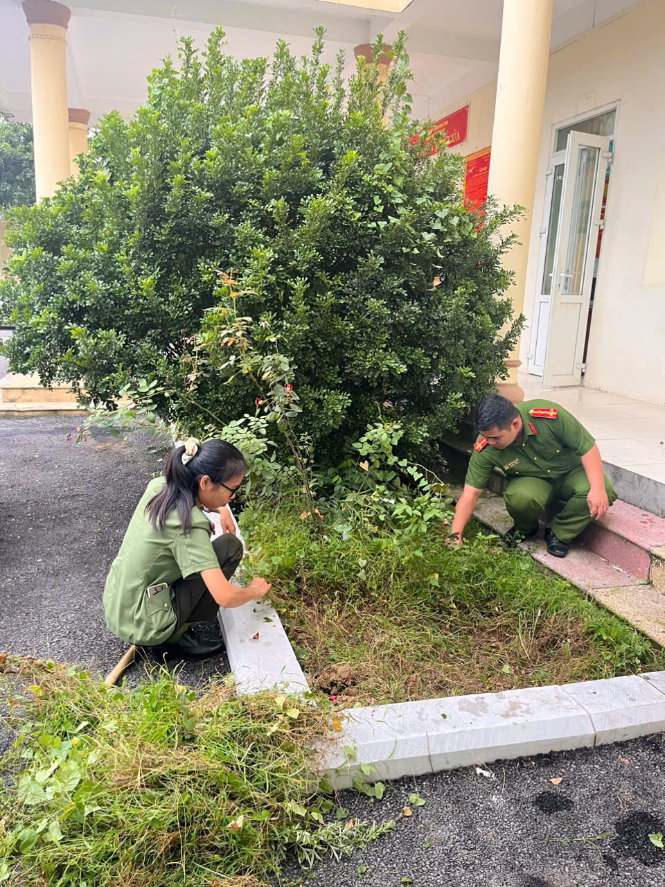 Chiều thứ 6 hằng tuần, cán bộ, chiến sĩ Công an xã đã tổ chức hoạt động tổng dọn vệ sinh trong khuôn viên trụ sở đơn vị.