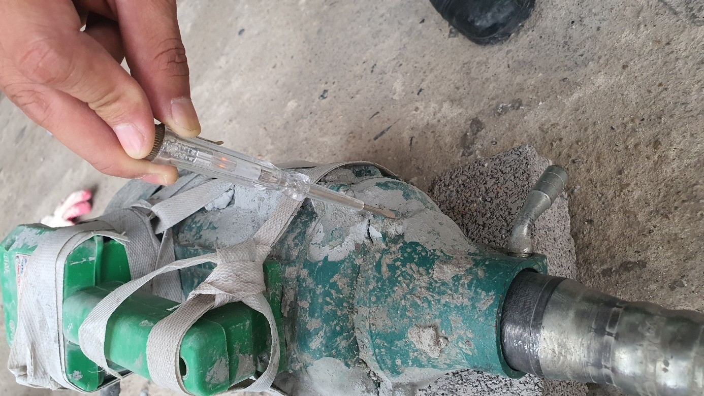 Máy đầm dùi bê tông bị rò điện tại phần thân vỏ