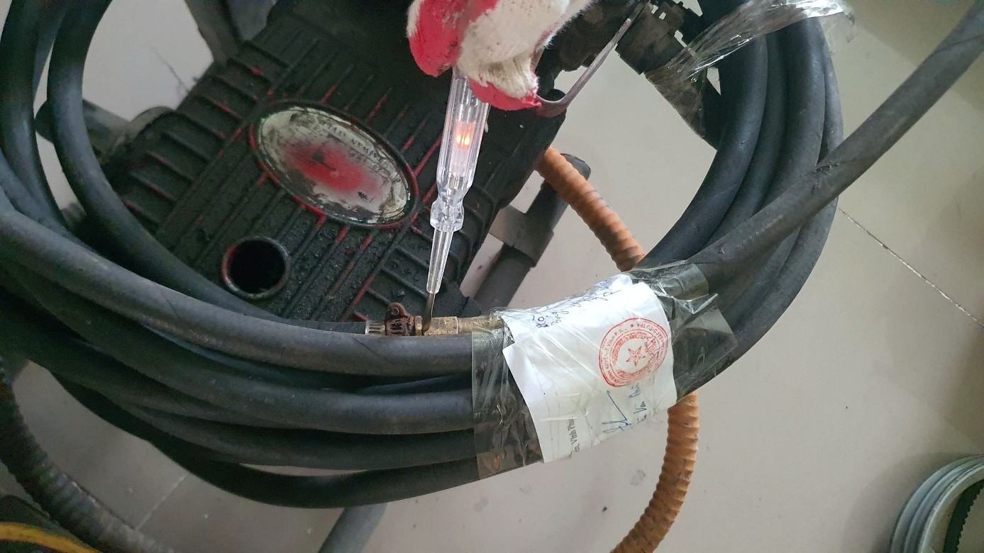Máy bơm cao áp bị rò điện tại phần hở kim loại không có lớp sơn cách điện và tại cuộn dây nối với máy bơm Các vụ việc trên là lời cảnh báo nghiêm khắc về nguy cơ rò điện từ các thiết bị sinh hoạt, sản xuất, hiểm họa luôn tiềm ẩn trong mỗi gia đình, cơ sở làm việc nếu không tuân thủ các quy tắc an toàn.