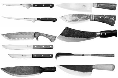 1. Dao sắc, nhọn: Lưỡi dao dài từ 12 cm trở lên, rộng từ 2 cm trở lên, đầu nhọn, lưỡi sắc, hình thẳng hoặc cong.