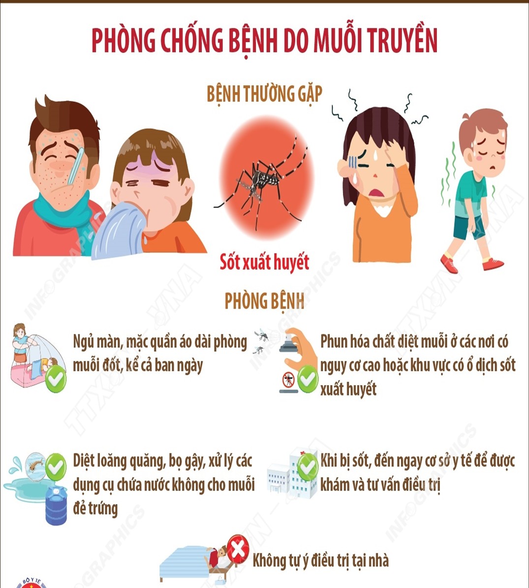 - Diệt lăng quăng, bọ gậy, không để nước đọng