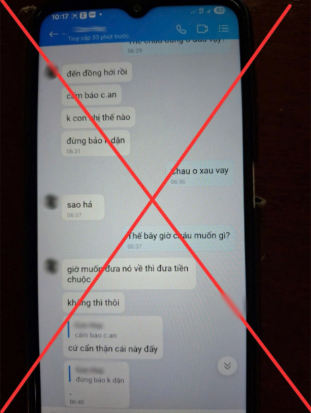 Mới đây, ngày 08/11/2025, Công an phường Việt Trì tiếp nhận tin báo của chị T.T.H., trú tại phường Việt Trì, về việc con trai chị đột ngột bỏ nhà đi. Đến buổi sáng cùng ngày, gia đình nhận được tin nhắn qua tài khoản Zalo của con, kèm hình ảnh cháu bị trói và nội dung yêu cầu chuyển 55 triệu đồng tiền chuộc.