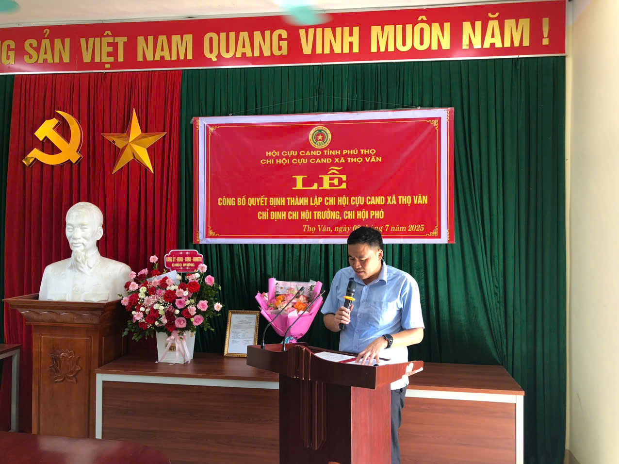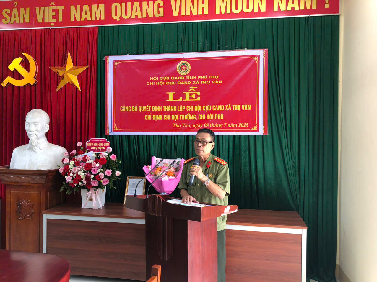 Buổi lễ được tổ chức theo quyết định của Hội Cựu CAND tỉnh Phú Thọ về việc thành lập chi hội Cựu CAND xã Thọ Văn, chỉ định Chi hội trưởng, Chi hội phó (Lâm thời). Lễ ra mắt diễn ra với sự đồng ý của Đảng ủy, UBND, Ủy ban Mặt trận Tổ quốc xã Thọ Văn, sự phối hợp chặt chẽ của Công an xã Thọ Văn và sự chỉ đạo sát sao của Hội Cựu CAND tỉnh Phú Thọ.
