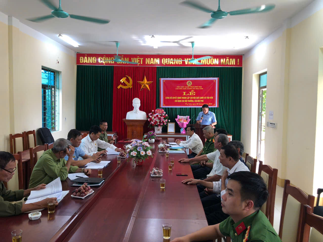 Vừa qua, tại trụ sở Công an xã Thọ Văn, tỉnh Phú Thọ, Chi hội Cựu Công an nhân dân xã Thọ Văn đã tổ chức Lễ công bố quyết định thành lập chỉ hội và chỉ định nhân sự Ban lãnh đạo lâm thời.