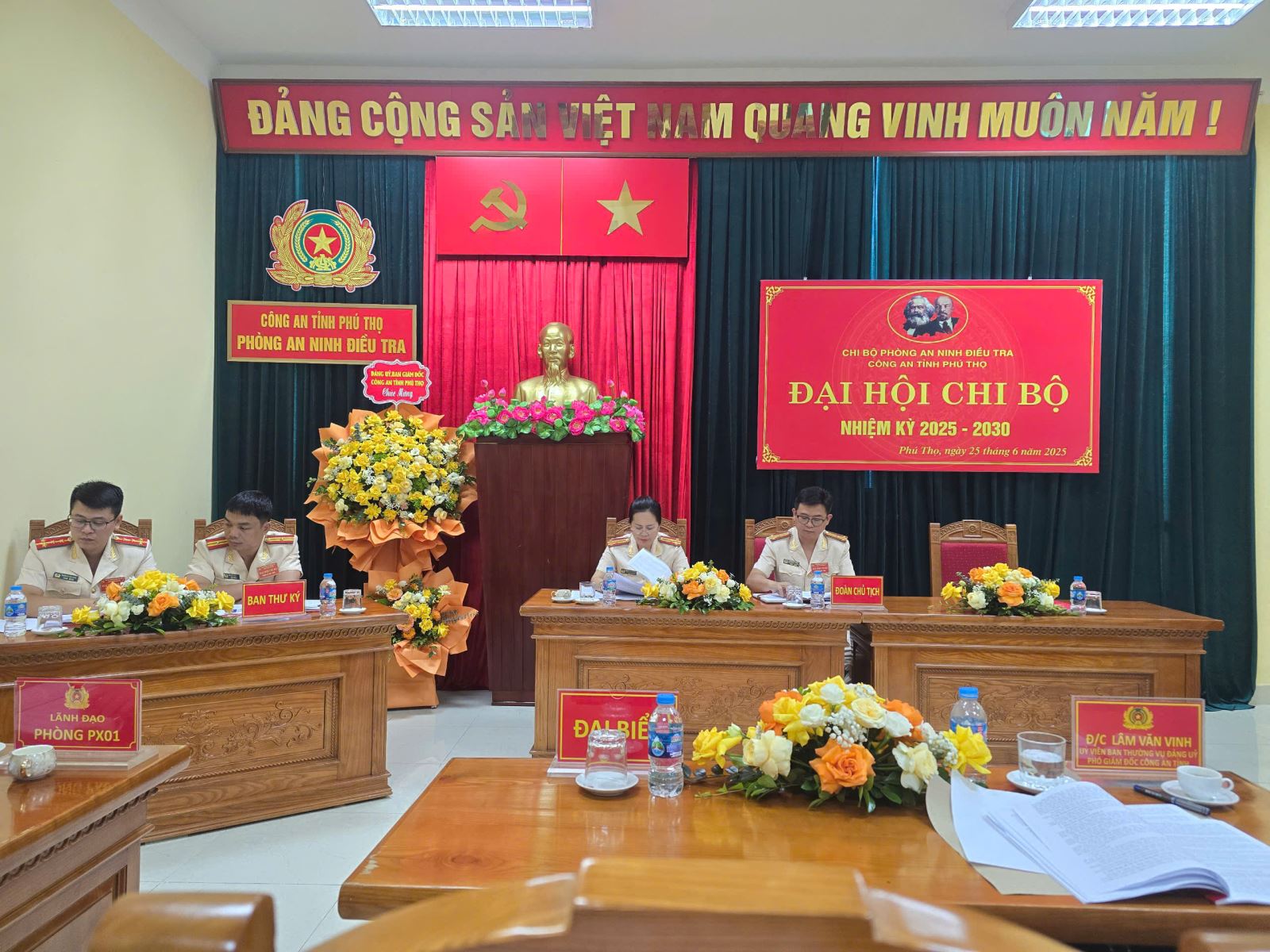 Thực hiện Kế hoạch của Đảng ủy Công an tỉnh Phú Thọ về tổ chức đại hội các chi bộ trực thuộc, ngày 25/6/2025, Chi bộ Phòng An ninh điều tra đã tổ chức thành công Đại hội Đảng nhiệm kỳ 2025-2030. Dự và chỉ đạo Đại hội có đồng chí Đại tá Lâm Văn Vinh - Ủy viên BTV Đảng ủy, Phó Giám đốc Công an tỉnh; đại diện các phòng chức năng thuộc Công an tỉnh.