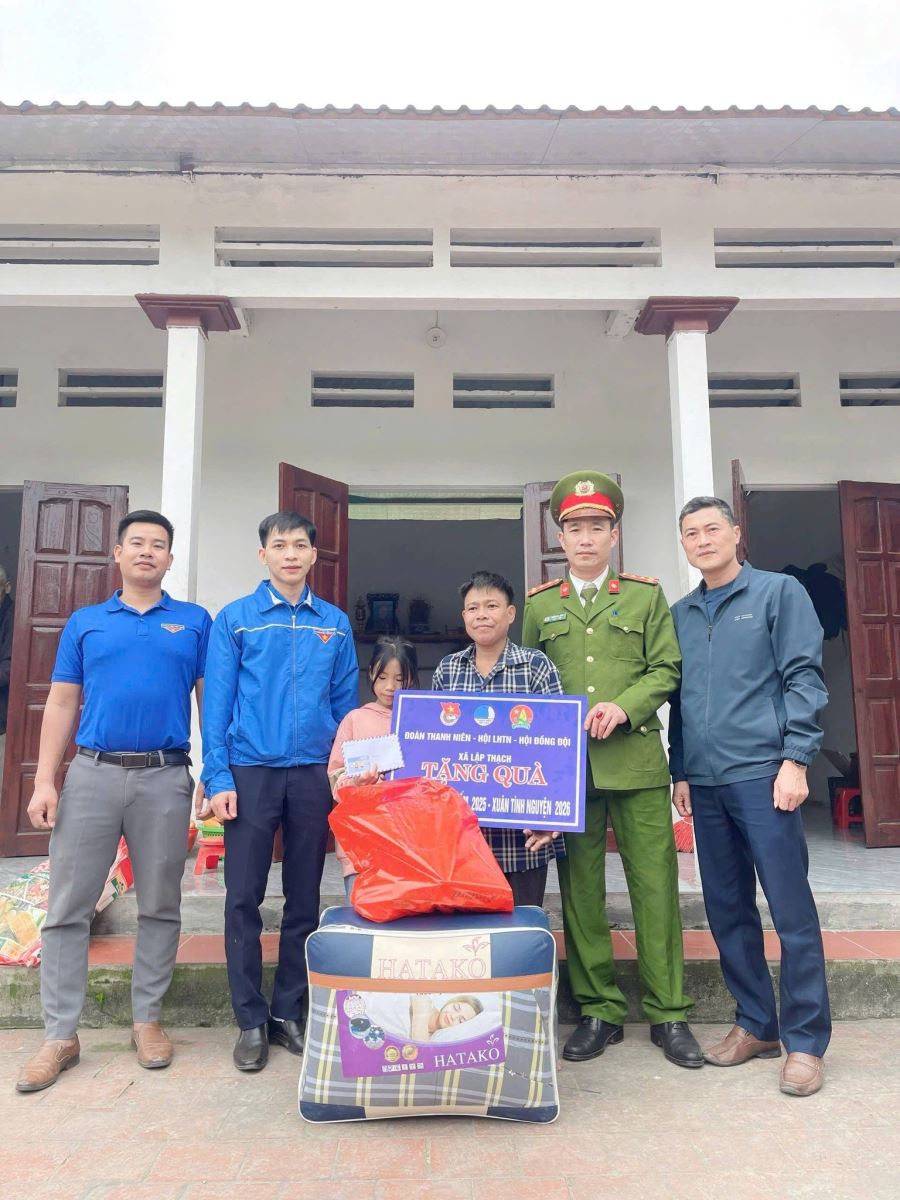 Nhằm phát huy tinh thần xung kích, tình nguyện của tuổi trẻ trong công tác an sinh xã hội, chăm lo Tết cho học sinh có hoàn cảnh khó khăn, ngày 30/01/2026, Chi đoàn Công an xã Lập Thạch đã phối hợp với Đoàn Thanh niên xã và các nhà hảo tâm trên địa bàn tổ chức chương trình “Đông ấm 2025 - Xuân tình nguyện 2026”, trao tặng 70 suất quà Tết cho học sinh nghèo vượt khó tại các trường học trên địa bàn xã.