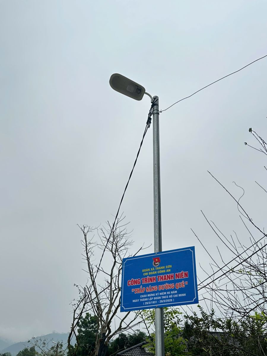 Công trình “Thắp sáng đường quê” là hoạt động hưởng ứng Tháng Thanh niên năm 2026 của Chi đoàn Công an xã Thanh Sơn, đồng thời thể hiện sự tham gia của đoàn viên thanh niên trong các hoạt động vì cộng đồng. Thông qua hoạt động này, lực lượng đoàn viên Công an xã góp phần cùng địa phương cải thiện hạ tầng sinh hoạt, tạo điều kiện thuận lợi cho người dân trong đời sống hằng ngày.