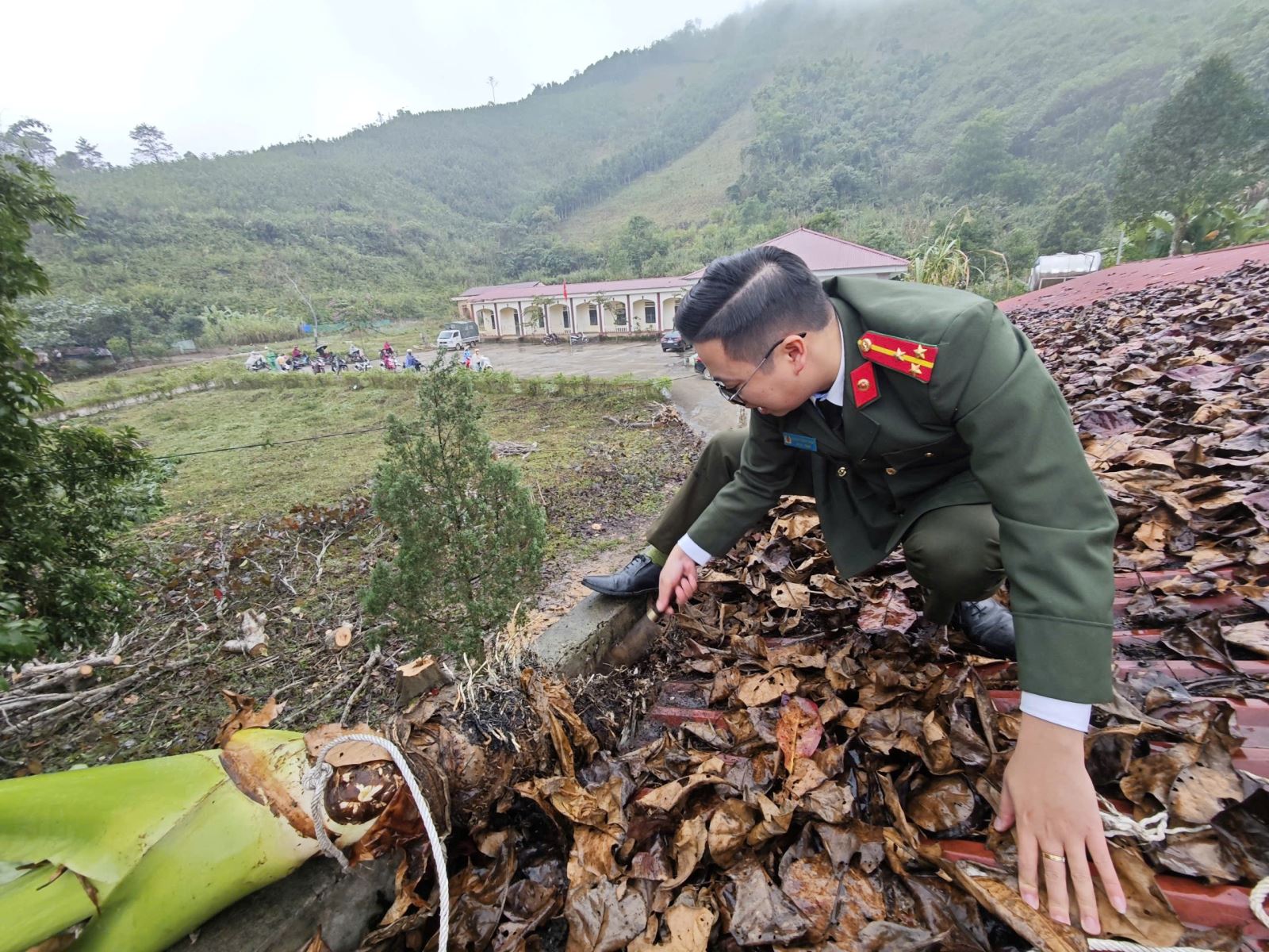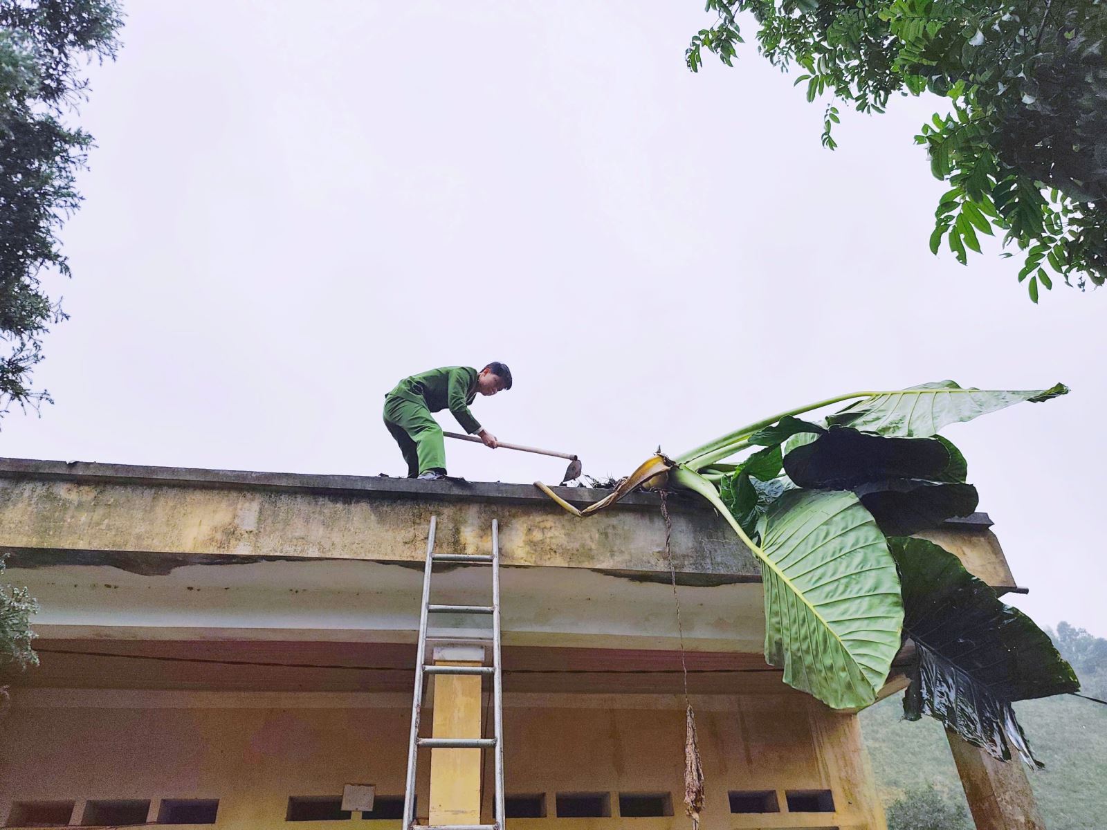 Chi đoàn Công an xã hỗ trợ Trường Phổ thông Dân tộc Bán trú Tiểu học Trung Sơn A - Điểm trường khu Đồng Măng, xã Trung Sơn dọn dẹp khuôn viên, chỉnh trang lớp học