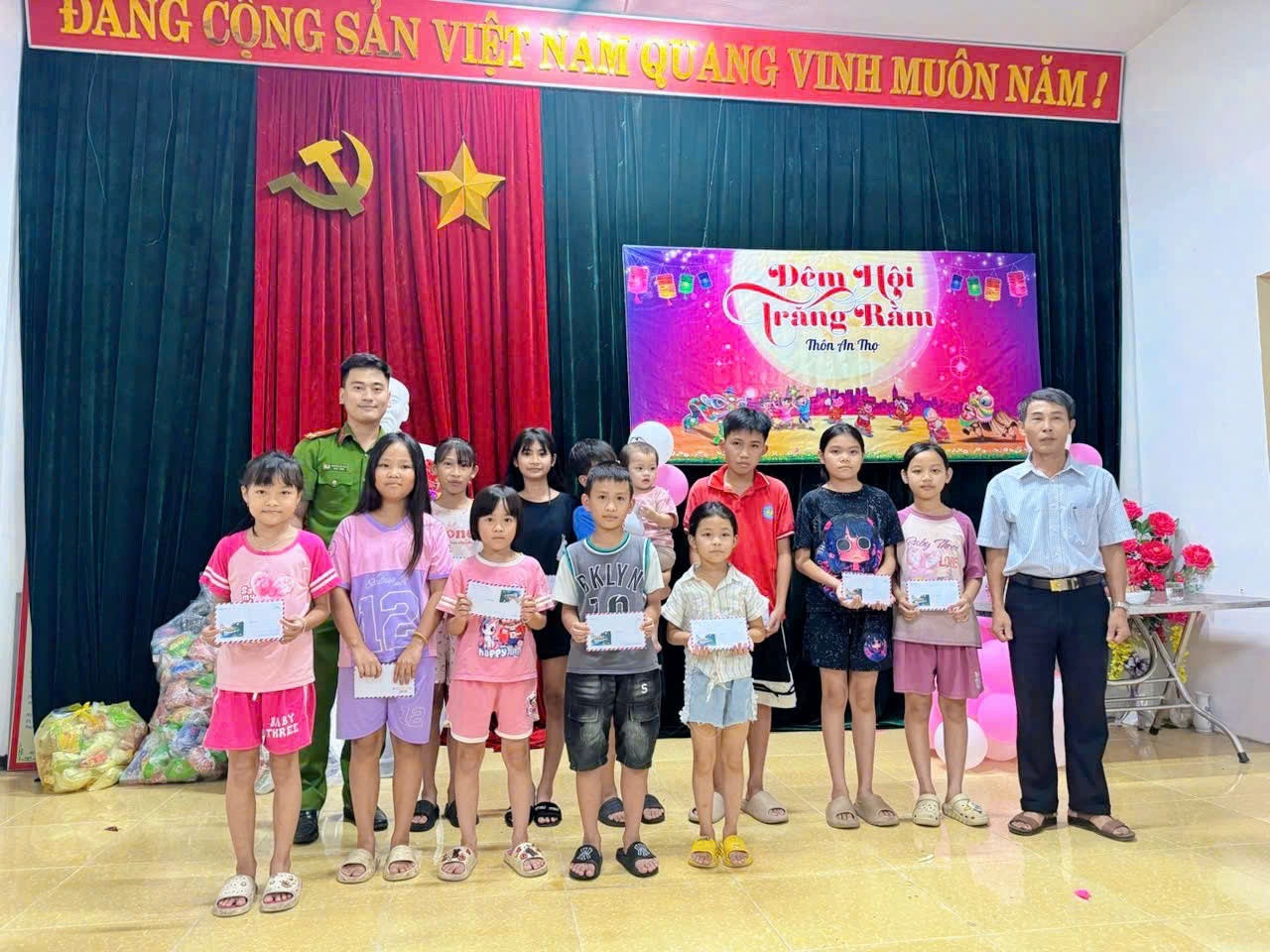 Chương trình diễn ra trong không khí rộn ràng, vui tươi với nhiều hoạt động ý nghĩa: Giao lưu văn nghệ, đố vui, múa lân - phá cỗ Trung thu và đặc biệt là phần trao tặng hàng trăm phần quà cho các cháu thiếu nhi có hoàn cảnh khó khăn, học sinh chăm ngoan, vượt khó vươn lên trong học tập. Ngoài ra, chi đoàn Công an xã đã đi đến từng nhà, trao từng phần quà đến tận tay các em.