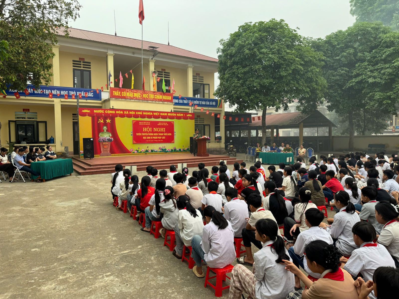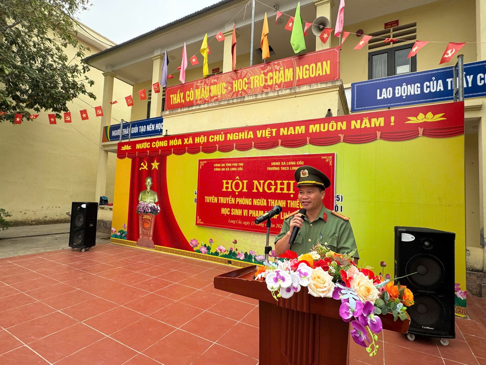 Tại hội nghị, đồng chí Trung tá Đinh Giang Nam đã trực tiếp thông tin đến các em học sinh về tình hình an ninh, trật tự trên địa bàn xã; đồng thời phổ biến những hành vi vi phạm pháp luật thường gặp ở lứa tuổi thanh thiếu niên hiện nay. Nội dung tuyên truyền tập trung vào những vấn đề nổi bật, có nguy cơ tác động trực tiếp đến học sinh như bạo lực học đường, an ninh mạng, sử dụng mạng xã hội thiếu kiểm soát, vi phạm pháp luật trong sinh hoạt hằng ngày và các hành vi dễ phát sinh trong môi trường học đường.