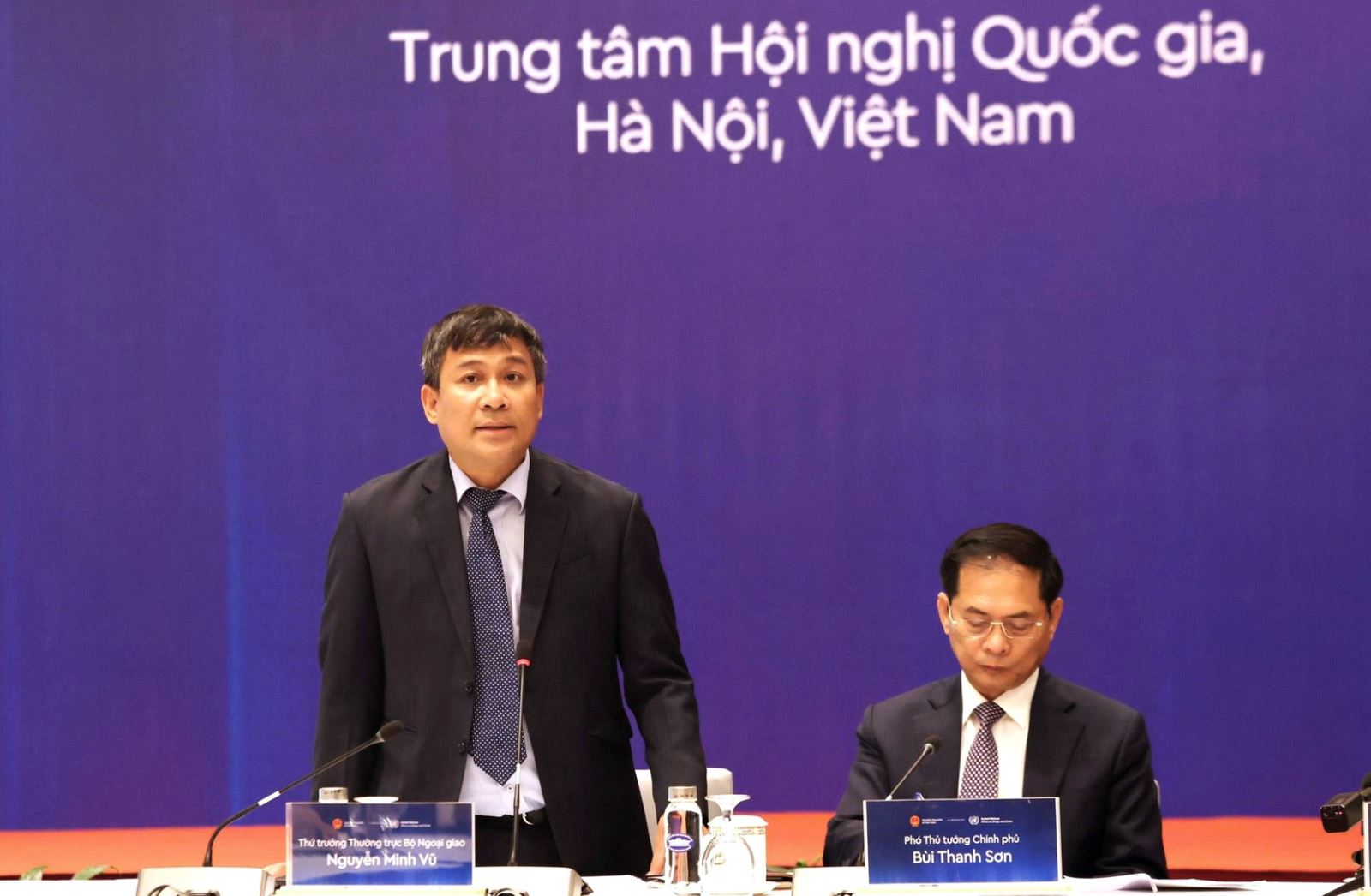 Thứ trưởng Thường trực Bộ Ngoại giao Nguyễn Minh Vũ phát biểu tại cuộc họp.