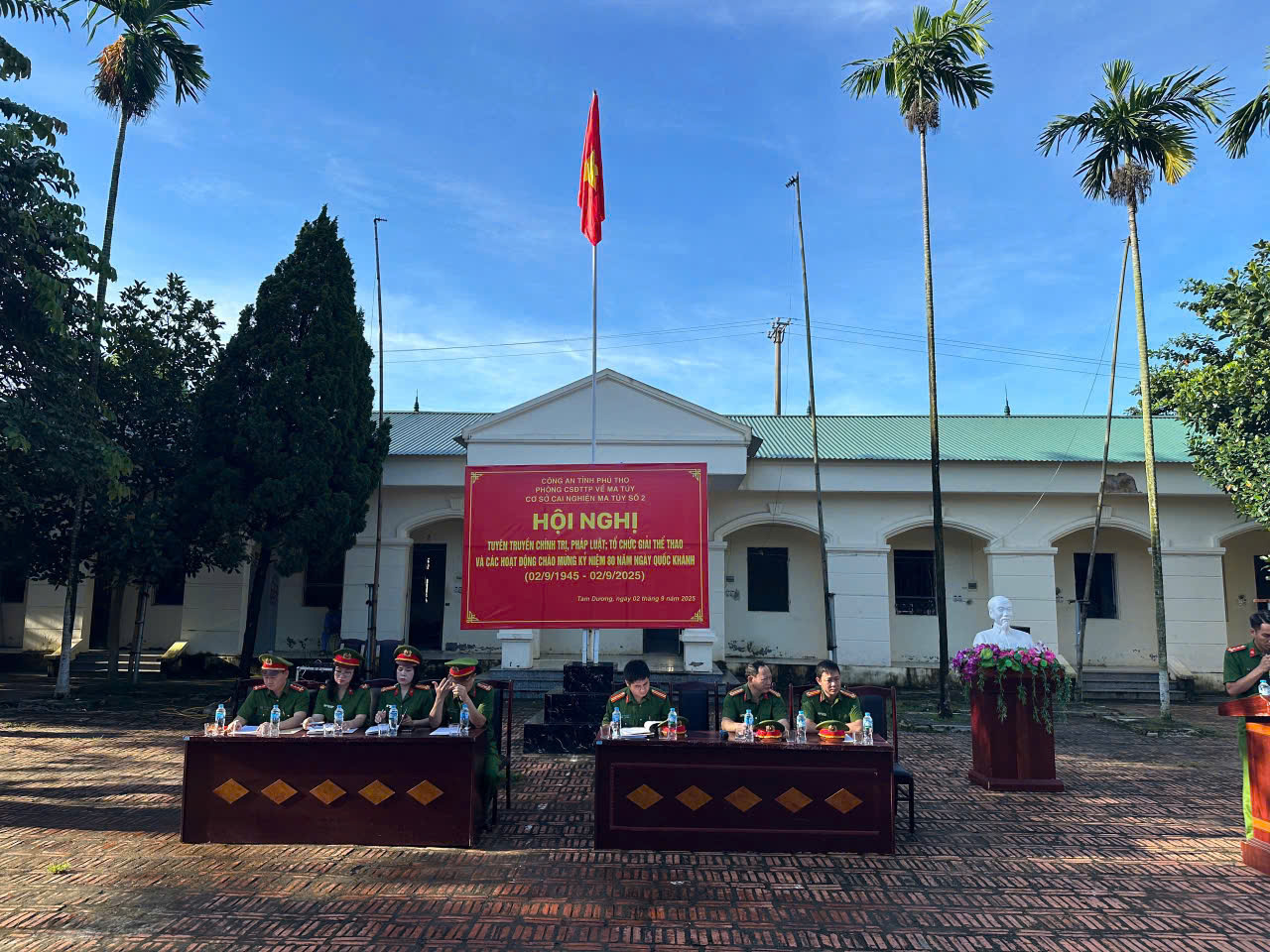 Nhân kỷ niệm 80 năm Ngày Quốc khánh nước Cộng hòa xã hội chủ nghĩa Việt Nam (02/9/1945 - 02/9/2025), sáng ngày 02/9, Cơ sở cai nghiện ma túy số 2 tổ chức Hội nghị tuyên truyền chính trị, pháp luật, kết hợp với các hoạt động thể thao, văn hóa – văn nghệ nhằm tạo không khí vui tươi, phấn khởi, cổ vũ tinh thần học viên trong quá trình học tập, rèn luyện và cai nghiện.