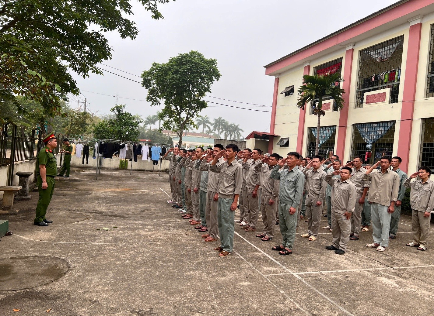 Bên cạnh đó, công tác giáo dục thể chất và huấn luyện điều lệnh cũng được thực hiện nghiêm ngặt. Hàng ngày, các bài tập thể dục buổi sáng và các nội dung điều lệnh như tập hợp đội ngũ, đi đều bước... đã giúp học viên hình thành lối sống nề nếp, xóa bỏ những thói quen tự do trước đây. Kết hợp với hoạt động tăng gia sản xuất như trồng rau xanh, chăn nuôi gia súc, gia cầm, học viên không chỉ được cải thiện chất lượng bữa ăn mà còn tìm thấy sự an nhiên, gần gũi với thiên nhiên trong quá trình điều trị.