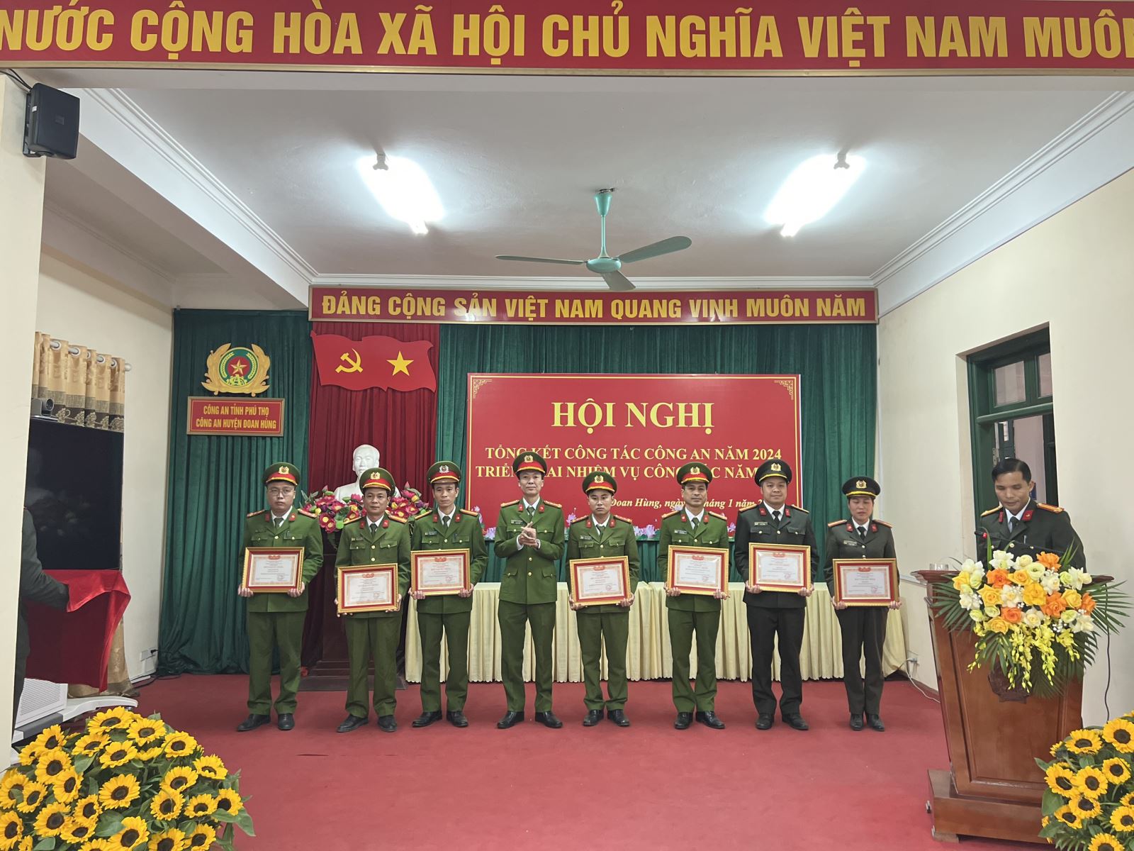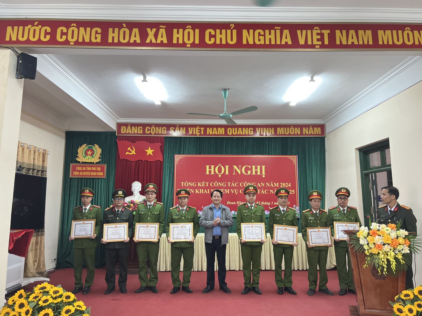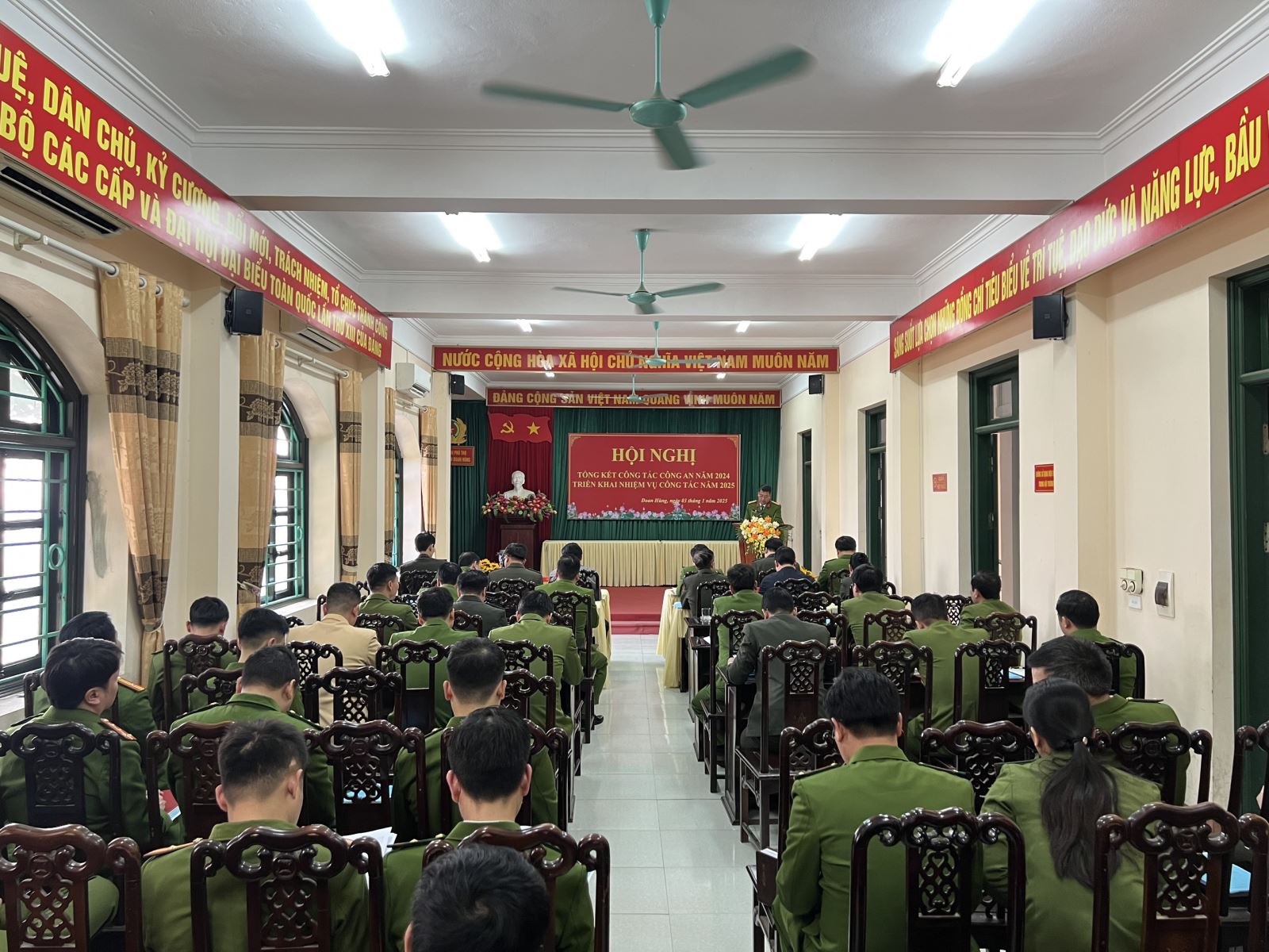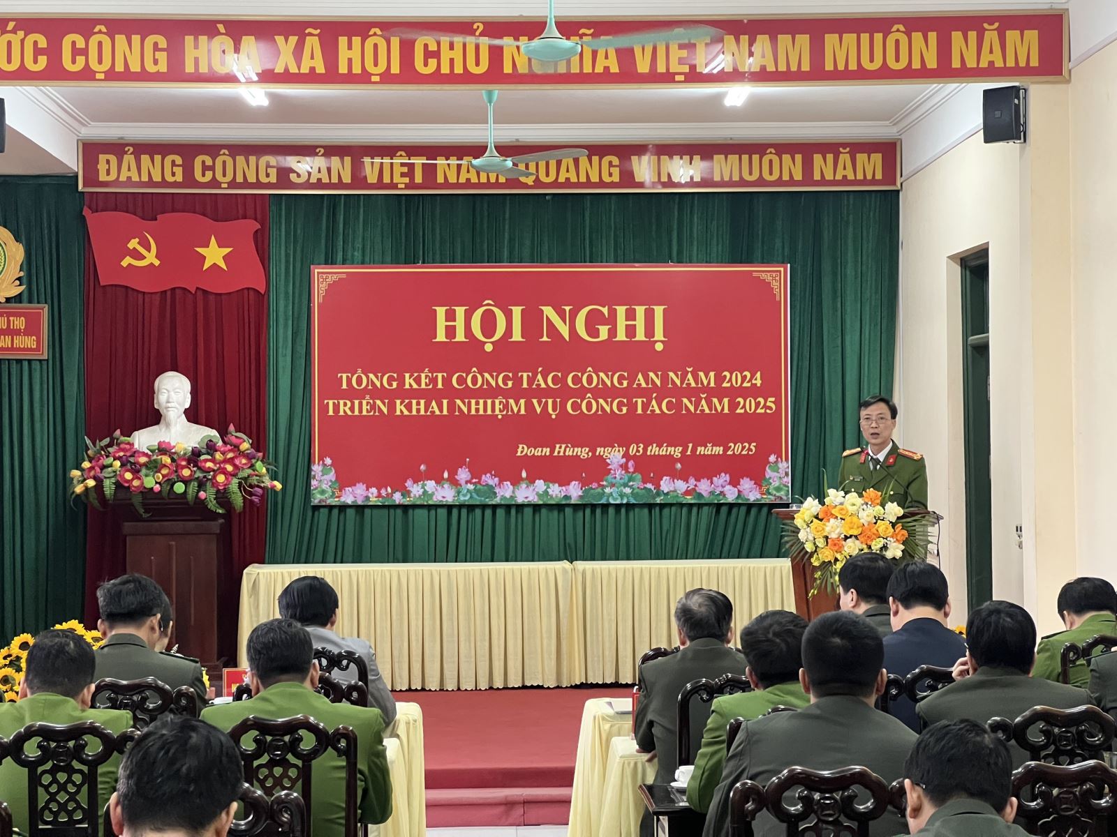 Phát biểu chỉ đạo tại hội nghị, đồng chí Đại tá Hoàng Nguyễn Phi Khanh, Phó Giám đốc Công an tỉnh ghi nhận những thành tích mà Công an huyện Đoan Hùng đã đạt được trong năm 2024. Đồng chí Phó Giám đốc yêu cầu Công an huyện Đoan Hùng cần tiếp tục chủ động, tập trung làm tốt công tác nắm, phân tích, đánh giá và dự báo đúng tình hình, kịp thời tham mưu cho cấp ủy, chính quyền địa phương và tổ chức đấu tranh có hiệu quả với các loại tội phạm. Tham mưu tốt công tác bảo vệ chính trị nội bộ phục vụ Đại hội Đảng các cấp năm 2025. Tập trung phòng ngừa, đấu tranh với các loại tội phạm lừa đảo, trộm cắp, cướp giật tài sản, tội phạm liên quan đến "tín dụng đen", tội phạm sử dụng công nghệ cao, đánh bạc, tổ chức đánh bạc, tàng trữ, sản xuất, vận chuyển, buôn bán hàng giả, hàng cấm, hàng kém chất lượng. Trước mắt tập trung lực lượng thực hiện tốt đợt cao điểm tấn công trấn áp tội phạm, đảm bảo tuyệt đối an toàn tết Nguyên đán Ất Tỵ 2025.