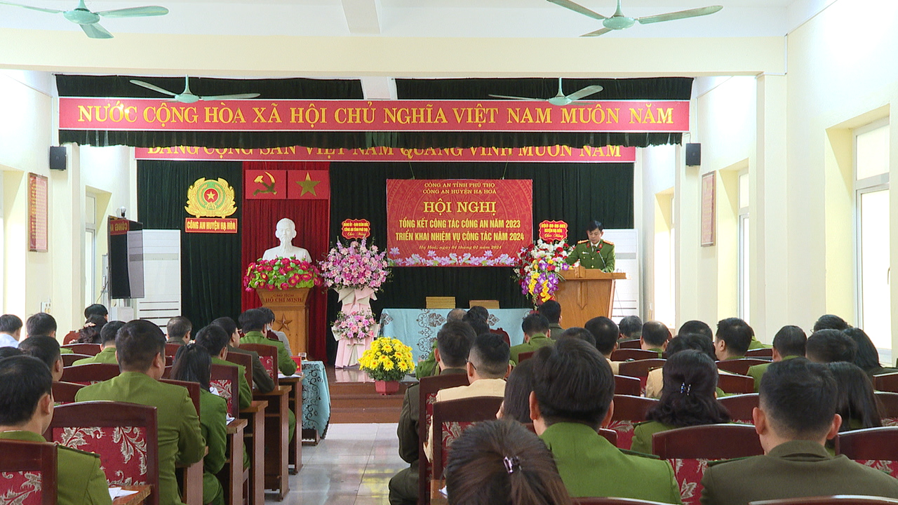 Ngày 04/01/2024, Công an huyện Hạ Hoà tổ chức tổng kết công tác công an năm 2023, triển khai nhiệm vụ công tác năm 2024. Đồng chí Nguyễn Xuân Trung, Phó giám đốc Công an tỉnh, đồng chí Nguyễn Ngọc Anh, chủ tịch UBND huyện dự và chỉ đạo hội nghị.