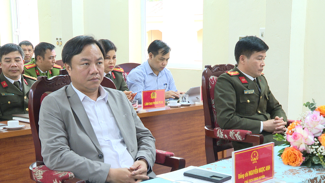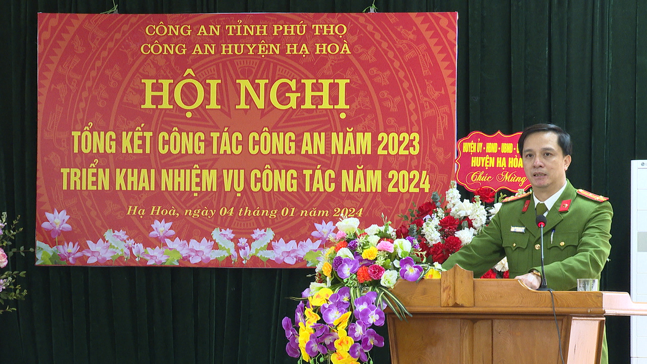 Phát biểu chỉ đạo tại hội nghị, đồng chí Phó Giám đốc ghi nhận, biểu dương kết quả Công an huyện đã đạt được trong năm 2023, đồng chí cũng chỉ ra những tồn tại hạn chế cần khắc phục. Đồng chí yêu cầu trong năm 2024, Công an huyện tiếp tục cố gắng, khắc phục tồn tại thiếu sót đã chỉ ra, tập trung triển khai thực hiện thắng lợi các nhiệm vụ, chỉ tiêu công tác đã đề ra ngày từ đầu năm. Nhất là tăng cường công tác nắm tình hình, thực hiện đồng bộ các giải pháp phòng chống tội phạm phấn đấu kéo giảm ít nhất 5% số vụ tội phạm về trật tự xã hội; tăng cường hiệu lực quản lý nhà nước về an ninh trật tự; đẩy mạnh công tác phát động phong trào toàn dân bảo vệ an ninh tổ quốc, thực hiện thế trận an ninh nhân dân, thế trận quốc phòng toàn dân vững chắc; đặc biệt là huy động các nguồn lực thực hiện hiệu quả Nghị quyết số 12-NQ/TW của Bộ Chính trị về “Xây dựng lực lượng CAND thực sự trong sạch, vững mạnh, chính quy, tinh nhuệ, hiện đại, đáp ứng yêu cầu, nhiệm vụ trong tình hình mới” với tinh thần “rõ người, rõ việc, rõ tiến độ, rõ kết quả, rõ trách nhiệm”. Trước mắt, Công an huyện cần tập trung thực hiện hiệu quả cao điểm tấn công trấn áp tội phạm bảo vệ Tết nguyên đán và các lễ hội đầu năm Giáp Thìn 2024, trọng tâm là Lễ hội Đền Mẫu Âu Cơ.