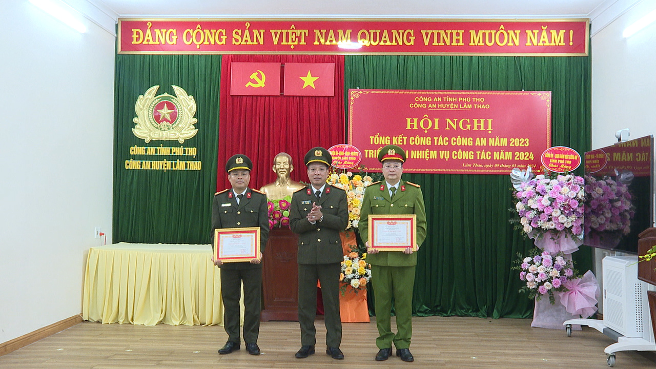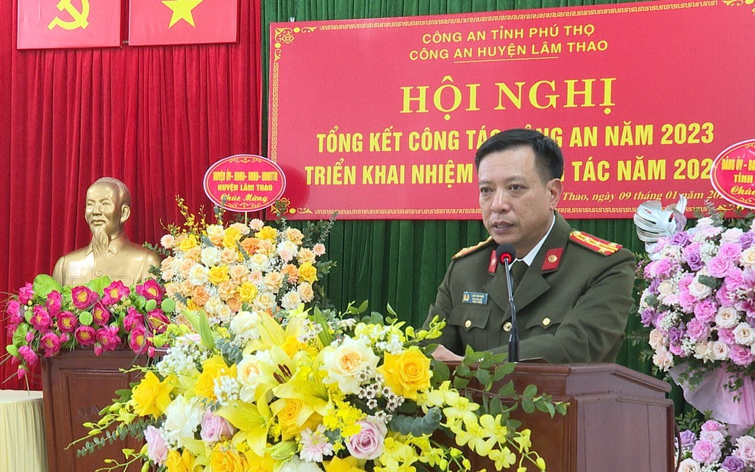 Phát biểu chỉ đạo tại hội nghị, đồng chí Bí thư huyện ủy Nguyễn Quang Anh và đồng chí Phó Giám đốc Công an tỉnh Lâm Văn Vinh ghi nhận những thành tích Công an huyện Lâm Thao đạt được trong năm 2023. Các Đồng chí lãnh đạo yêu cầu Công an huyện cần tiếp tục quán triệt, thực hiện nghiêm túc chỉ đạo của lãnh đạo các cấp, căn cứ tình hình cụ thể của địa bàn để cụ thể hóa thành chương trình, kế hoạch và tổ chức thực hiện ngay từ đầu năm, phấn đấu hoàn thành các chỉ tiêu nhiệm vụ, làm tốt công tác tham mưu cho huyện ủy, HĐND, UBND huyện và cấp ủy, chính quyền cơ sở trong lãnh, chỉ đạo công tác đảm bảo ANTT trên địa bàn. Trong đó, tăng cường công tác bảo đảm an ninh toàn diện trên các lĩnh vực và tại cơ sở; Tập trung đấu tranh với tội phạm, không để hình thành băng, ổ nhóm tội phạm trên địa bàn; tăng cường công tác quản lý vũ khí vật liệu nổ, công cụ hỗ trợ, ngành nghề kinh doanh có điều kiện, phòng chống cháy nổ; đổi mới, nâng cao chất lượng, hiệu quả phong trào toàn dân bảo vệ an ninh Tổ quốc; tiếp tục phát huy những điểm mạnh, khắc phục những điểm yếu, xử lý nghiêm các vi phạm nhỏ để phòng ngừa vi phạm lớn; huy động sức mạnh của toàn dân giúp đỡ lực lượng Công an hoàn thành nhiệm vụ; dựa vào dân để xây dựng lực lượng ngày càng trong sạch, vững mạnh, đáp ứng yêu cầu, nhiệm vụ trong tình hình mới, bảo đảm ANTT, phục vụ đắc lực sự nghiệp phát triển kinh tế, xã hội của địa phương. Trước mắt là thực hiện có hiệu quả đợt cao điểm tấn công trấn áp tội phạm bảo vệ ANTT Tết Nguyên đán Giáp Thìn 2024, phục vụ Nhân dân vui Tết, đón xuân an toàn, lành mạnh.