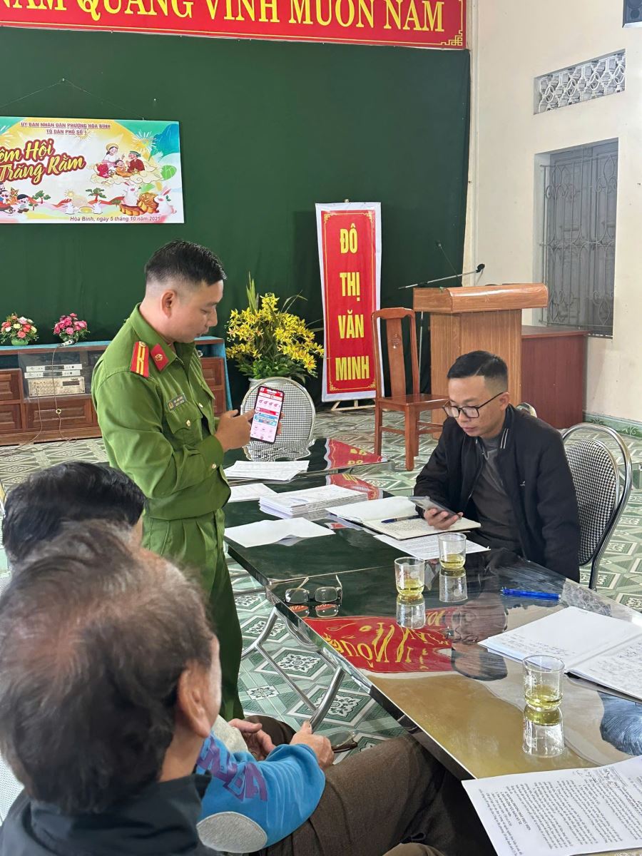 Ngay sau khi nhận được hướng dẫn, Công an phường Hòa Bình đã phân công cán bộ phụ trách địa bàn trực tiếp xuống các tổ dân phố để tuyên truyền, hướng dẫn người dân, cán bộ và đảng viên thực hiện góp ý qua ứng dụng VNeID. Các tổ công tác đã hướng dẫn cụ thể từng bước thao tác trên điện thoại thông minh, giúp người dân dễ dàng truy cập, lựa chọn nội dung và gửi ý kiến góp ý đến cơ quan có thẩm quyền.