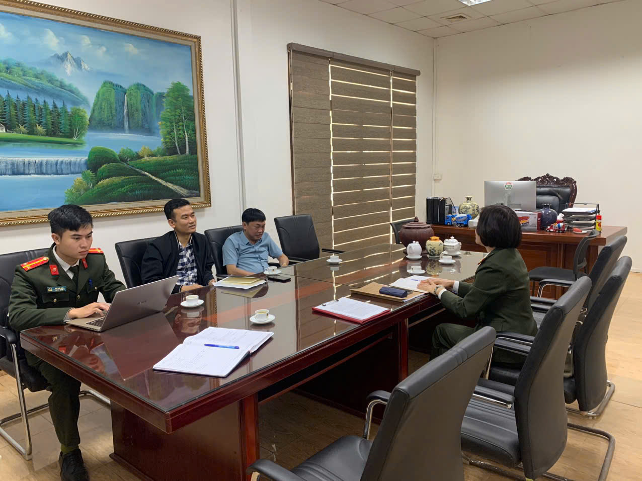 Công an phường Hoà Bình làm việc với các doanh nghiệp trên địa bàn