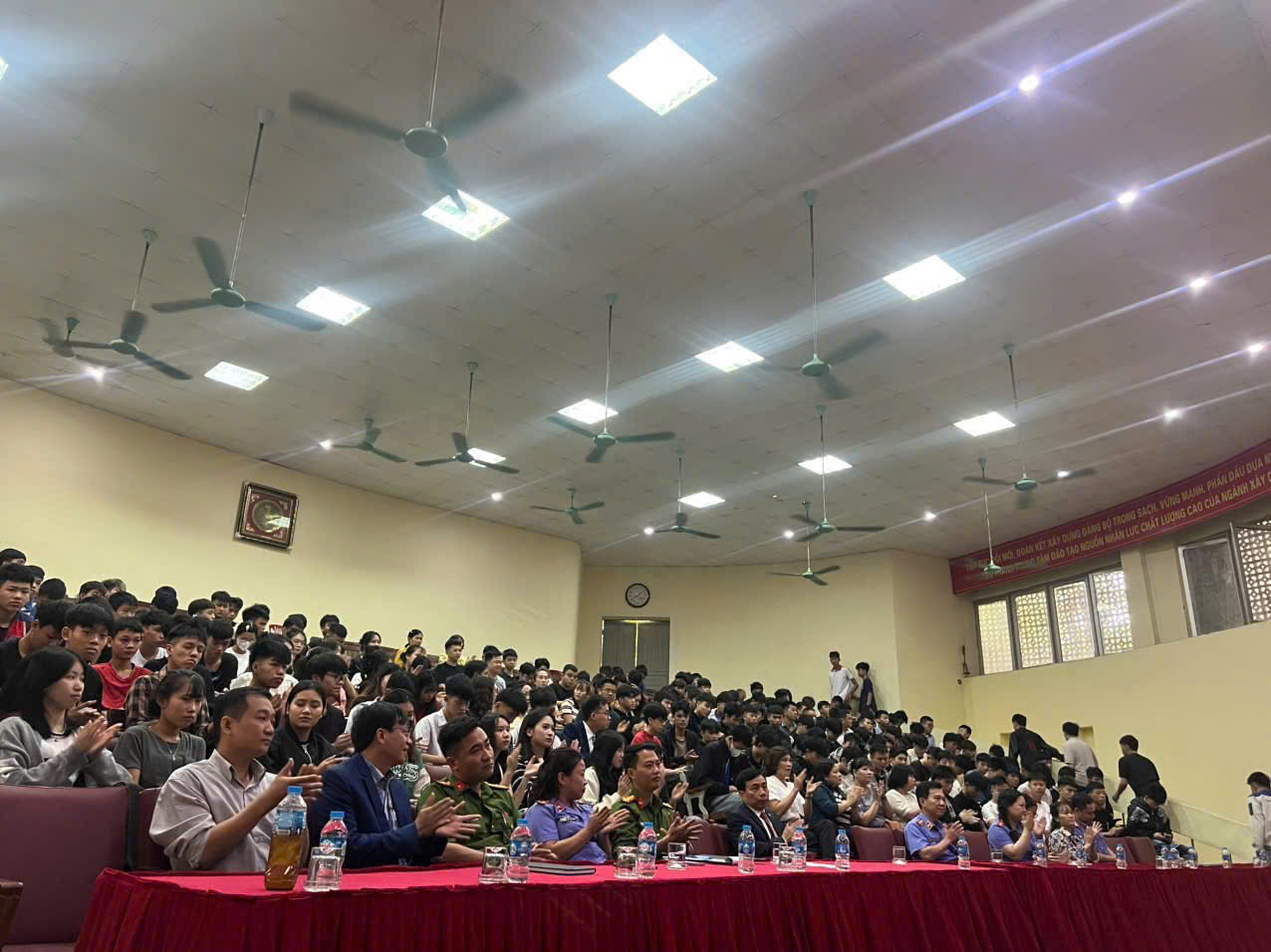 Cán bộ, giáo viên và sinh viên Trường Cao đẳng Nghề Sông Đà tham dự buổi tuyên truyền Các báo cáo viên đã truyền đạt nhiều nội dung thiết thực, dễ hiểu và gần gũi, tập trung vào các chuyên đề chính như: nhận diện và phòng ngừa tệ nạn ma túy học đường; tác hại của ma túy; kỹ năng tham gia giao thông an toàn; phổ biến quy định về trật tự công cộng và trách nhiệm công dân trong giữ gìn an ninh, trật tự.