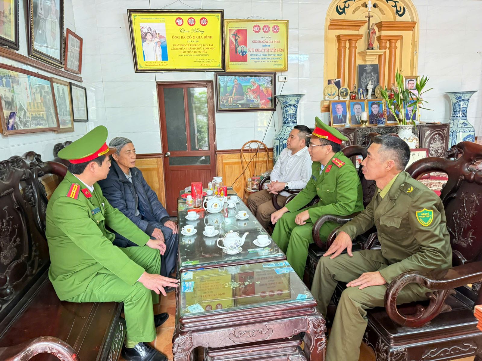 Bên cạnh đó, lực lượng Công an phường chủ động gặp gỡ, trao đổi với các chức sắc, chức việc tại các cơ sở tôn giáo trên địa bàn, vận động bà con giáo dân chấp hành tốt chủ trương của Đảng, chính sách, pháp luật của Nhà nước; tích cực tham gia bầu cử, góp phần củng cố khối đại đoàn kết toàn dân.