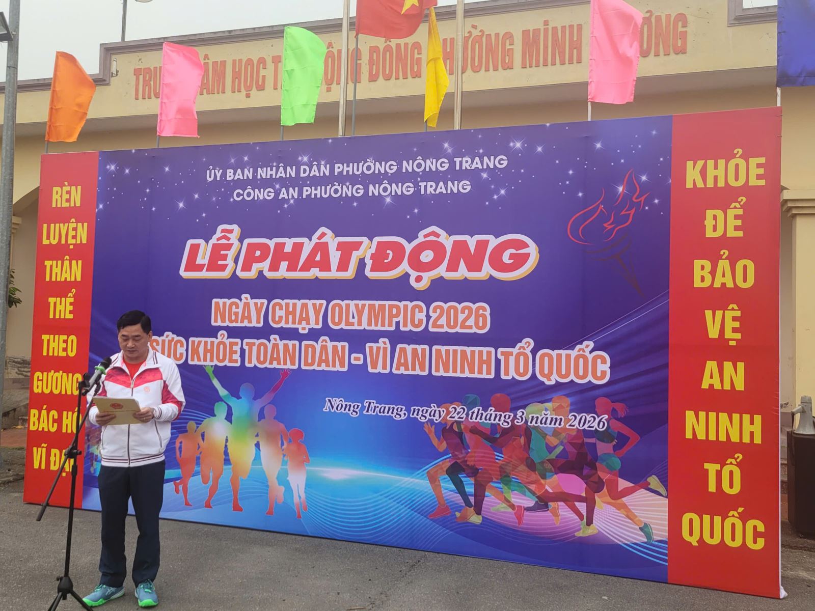 Hưởng ứng phong trào rèn luyện thân thể theo gương Bác Hồ vĩ đại, sáng năm 2026, Công an phường Nông Trang đã tích cực tham gia và phối hợp tổ chức Lễ phát động Ngày chạy Olympic vì sức khỏe toàn dân trên địa bàn, góp phần lan tỏa lối sống lành mạnh, nâng cao thể chất và tăng cường gắn kết giữa lực lượng Công an với Nhân dân.