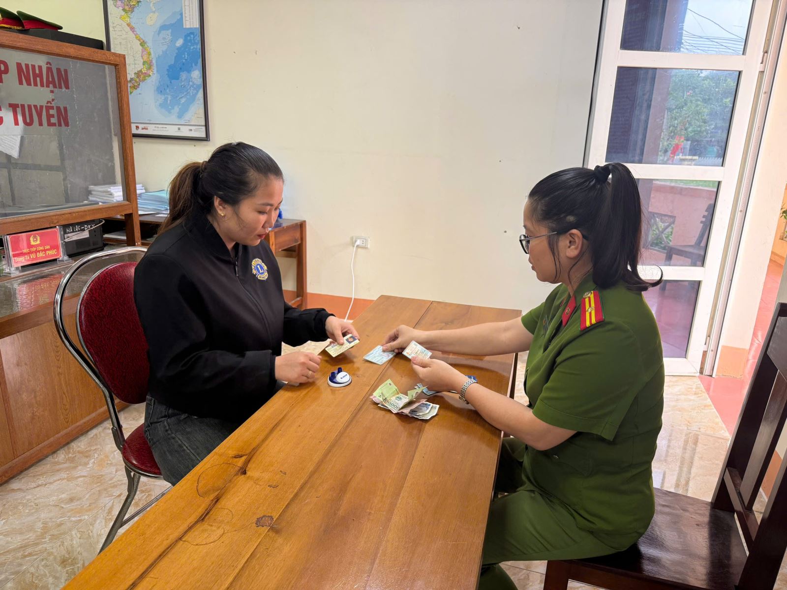 Trước đó, khoảng 18 giờ cùng ngày, anh Nguyễn Đức Thắng (sinh năm 2003, trú tại khu 2, xã Đan Thượng, tỉnh Phú Thọ) đến Công an phường Phú Thọ trình báo việc anh nhặt được một chiếc ví tại khu vực dân cư. Bên trong ví có nhiều giấy tờ tùy thân quan trọng mang tên Trần Thị Thu Hằng (sinh năm 2002, trú tại khu 4, phường Phú Thọ, tỉnh Phú Thọ).