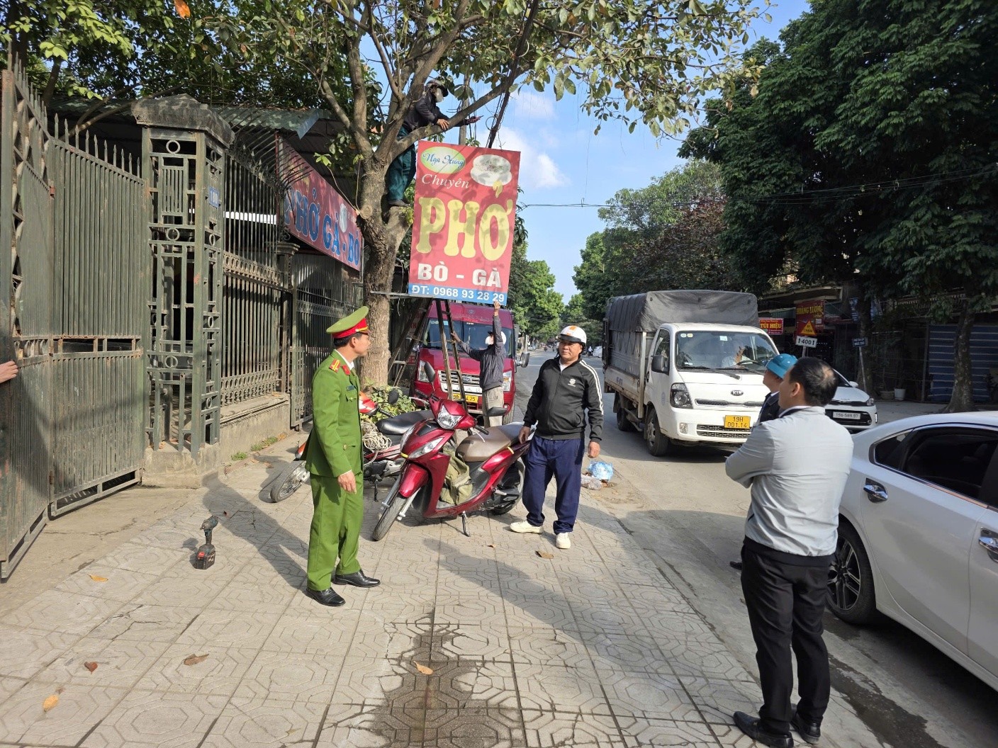 Song song với công tác tuyên truyền, Công an phường đã phối hợp với các lực lượng chức năng tổ chức ra quân kiểm tra, xử lý các trường hợp vi phạm. Kết quả, lực lượng chức năng đã cắt, tháo dỡ 25 trường hợp mái tôn che chắn lấn chiếm vỉa hè; tháo dỡ 75 biển quảng cáo vi phạm, trả lại hành lang an toàn giao thông. Đồng thời, lập biên bản xử phạt vi phạm hành chính 03 trường hợp theo quy định.