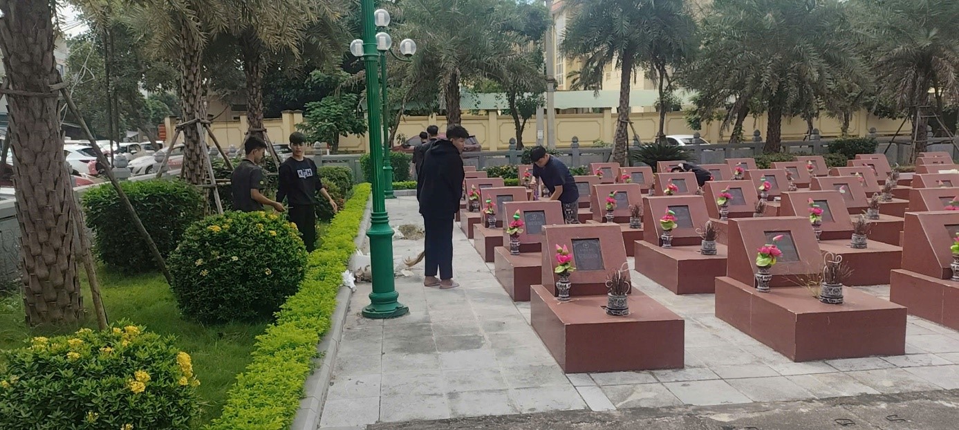 Tổ chức cho cháu thanh thiếu niên lao động công ích tại nghĩa trang liệt sỹ